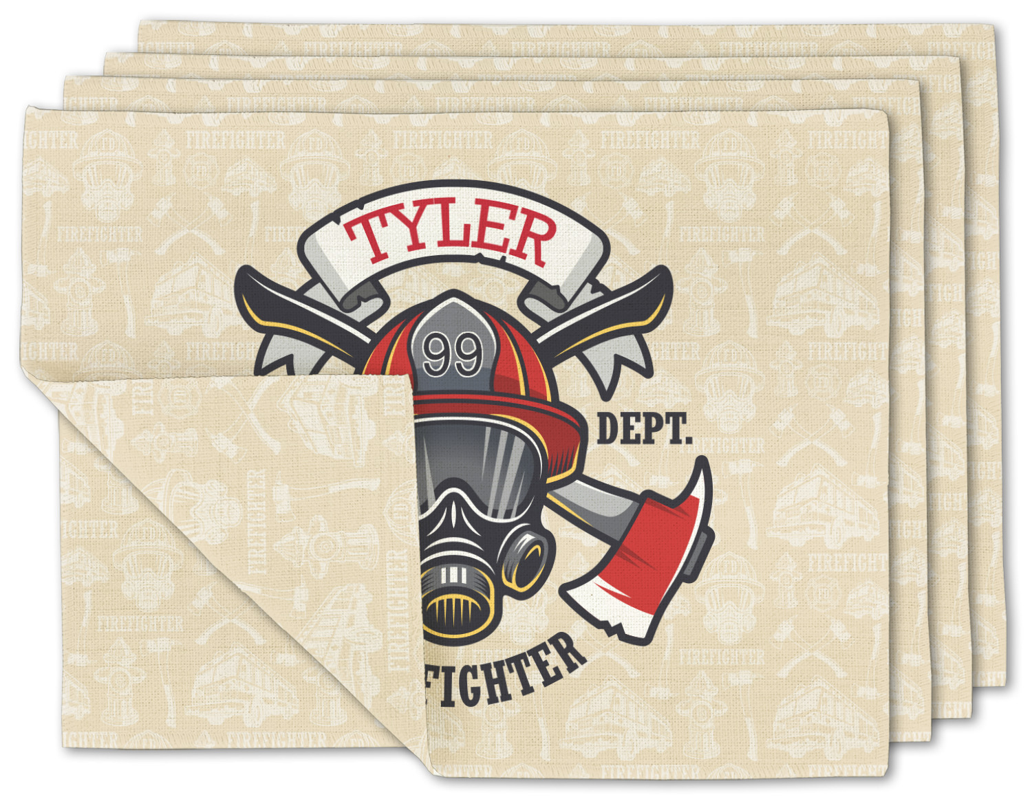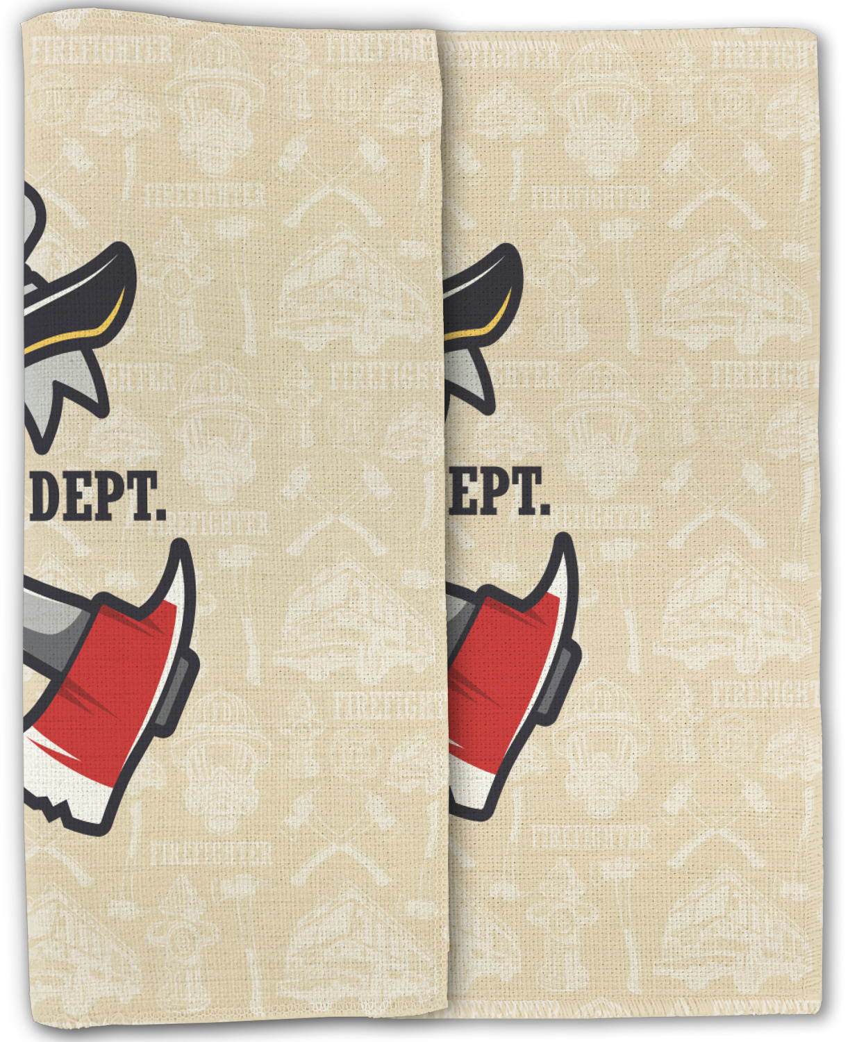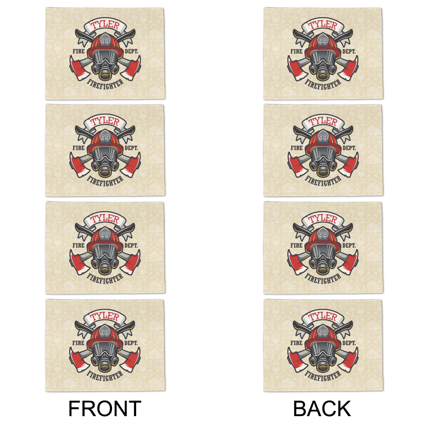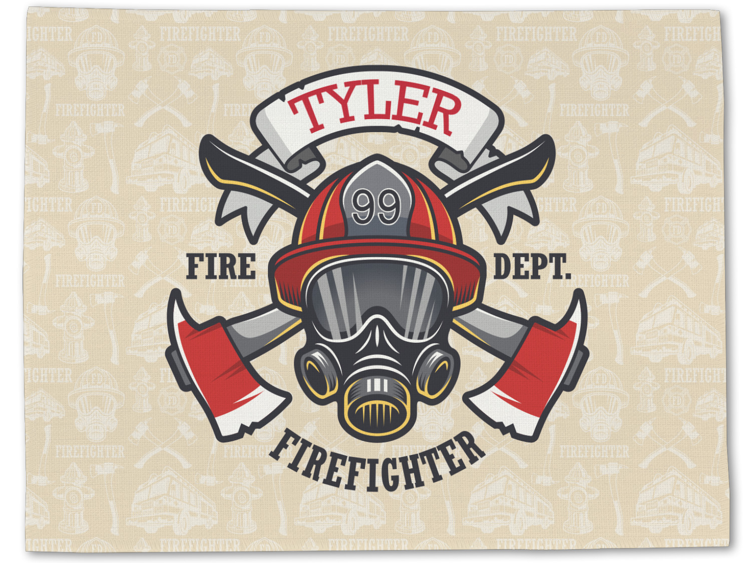 This design features a beautiful illustration of a firefighter's gear with axes. The top banner is where your personalization goes and underneath it says "Firefighter." The main colors are red and grey. The background is a cream and light cream color and has all kinds of fun firefighter symbols and illustrations. This is the perfect way to say thank you to the firefighter in your life.