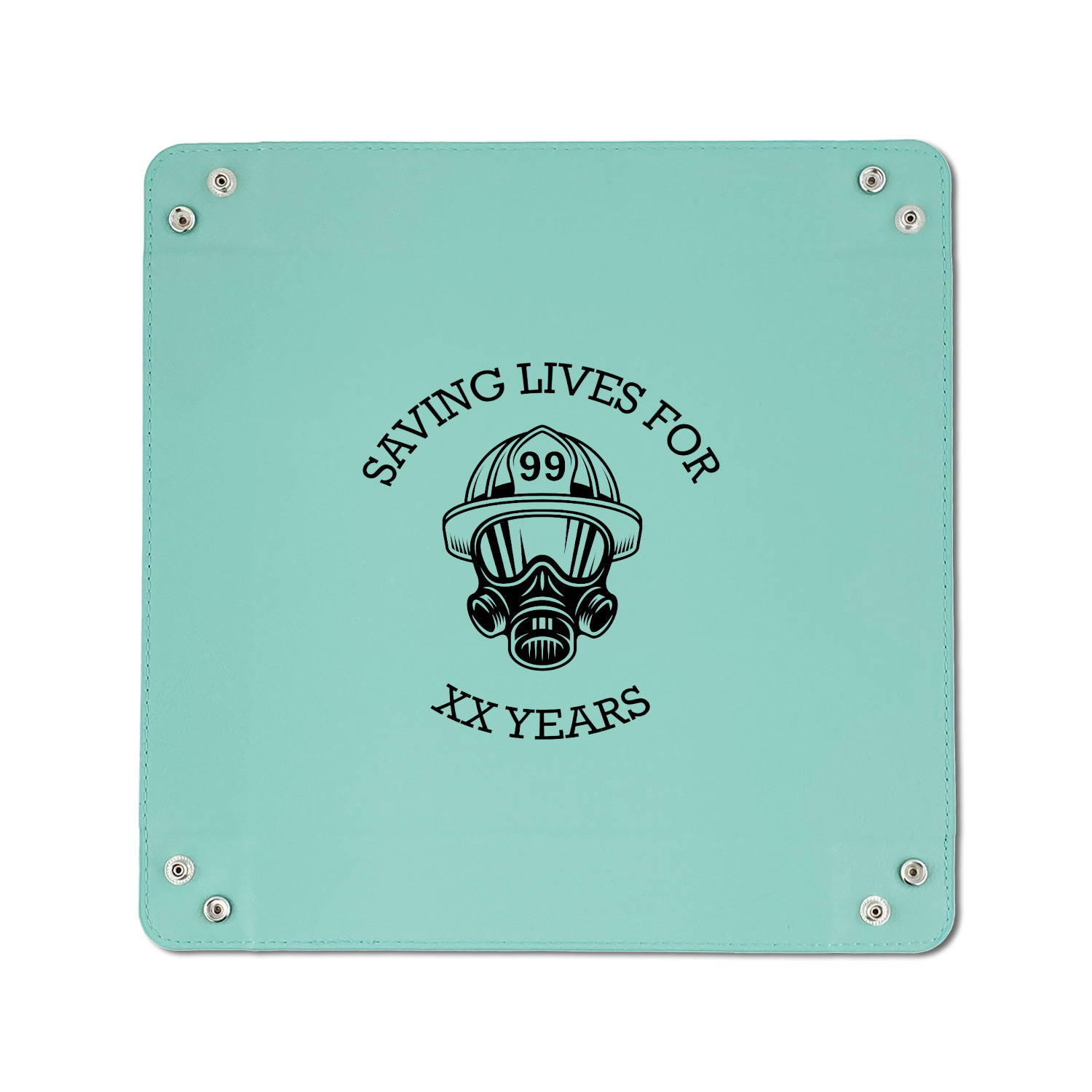 This design features a beautiful illustration of a firefighter's gear with axes. The top banner is where your personalization goes and underneath it says "Firefighter." The main colors are red and grey. The background is a cream and light cream color and has all kinds of fun firefighter symbols and illustrations. This is the perfect way to say thank you to the firefighter in your life.