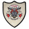 This design features a beautiful illustration of a firefighter's gear with axes. The top banner is where your personalization goes and underneath it says "Firefighter." The main colors are red and grey. The background is a cream and light cream color and has all kinds of fun firefighter symbols and illustrations. This is the perfect way to say thank you to the firefighter in your life.