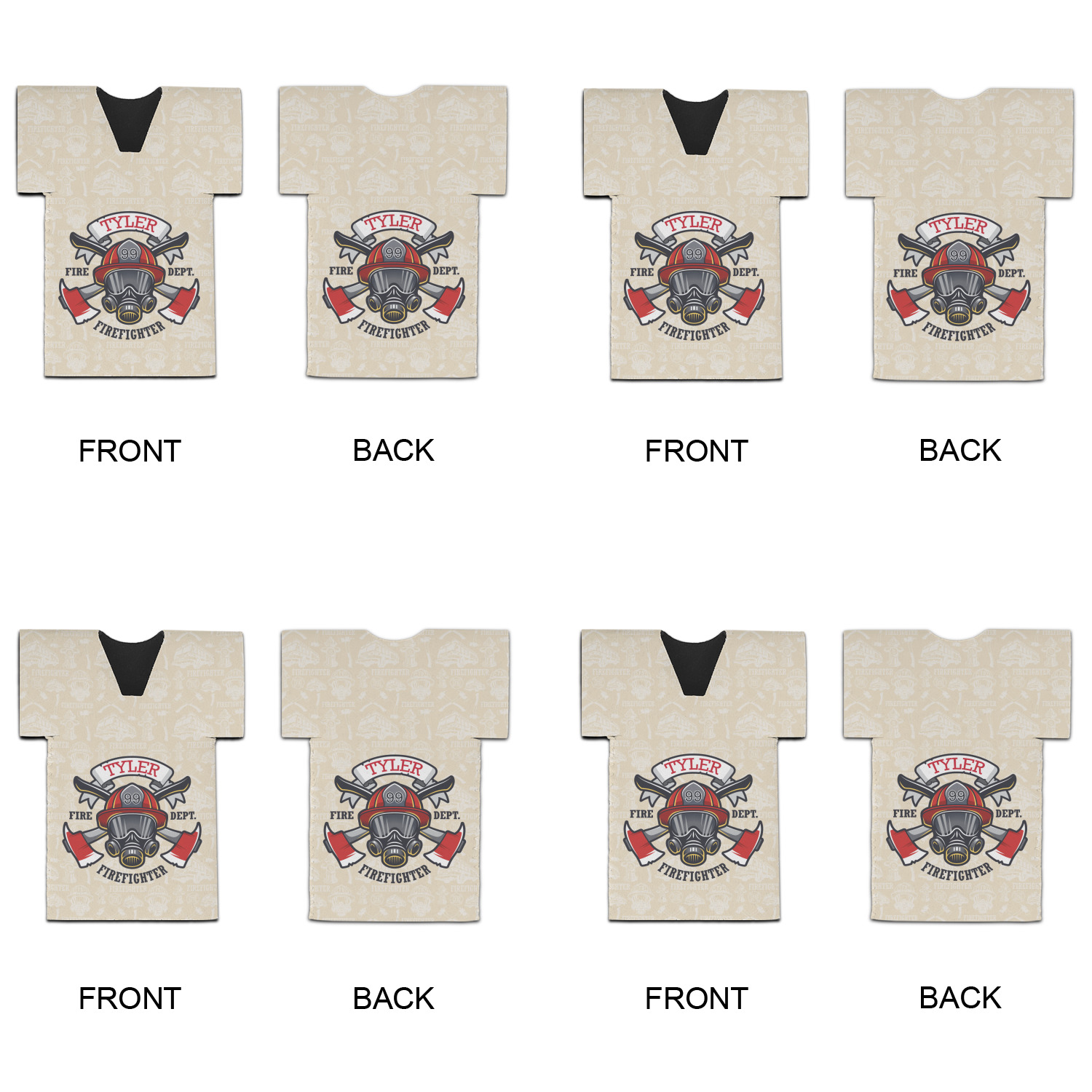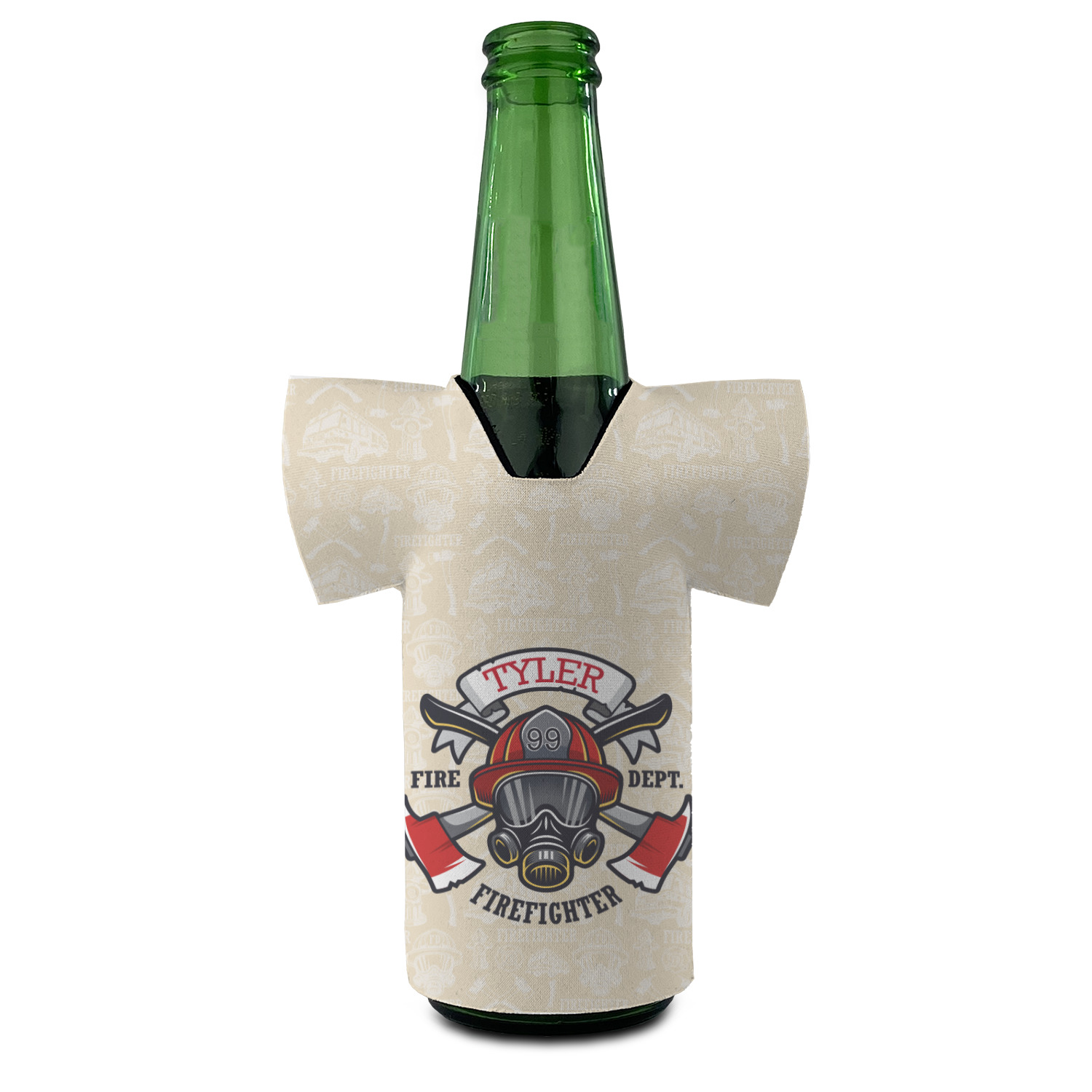 This design features a beautiful illustration of a firefighter's gear with axes. The top banner is where your personalization goes and underneath it says "Firefighter." The main colors are red and grey. The background is a cream and light cream color and has all kinds of fun firefighter symbols and illustrations. This is the perfect way to say thank you to the firefighter in your life.