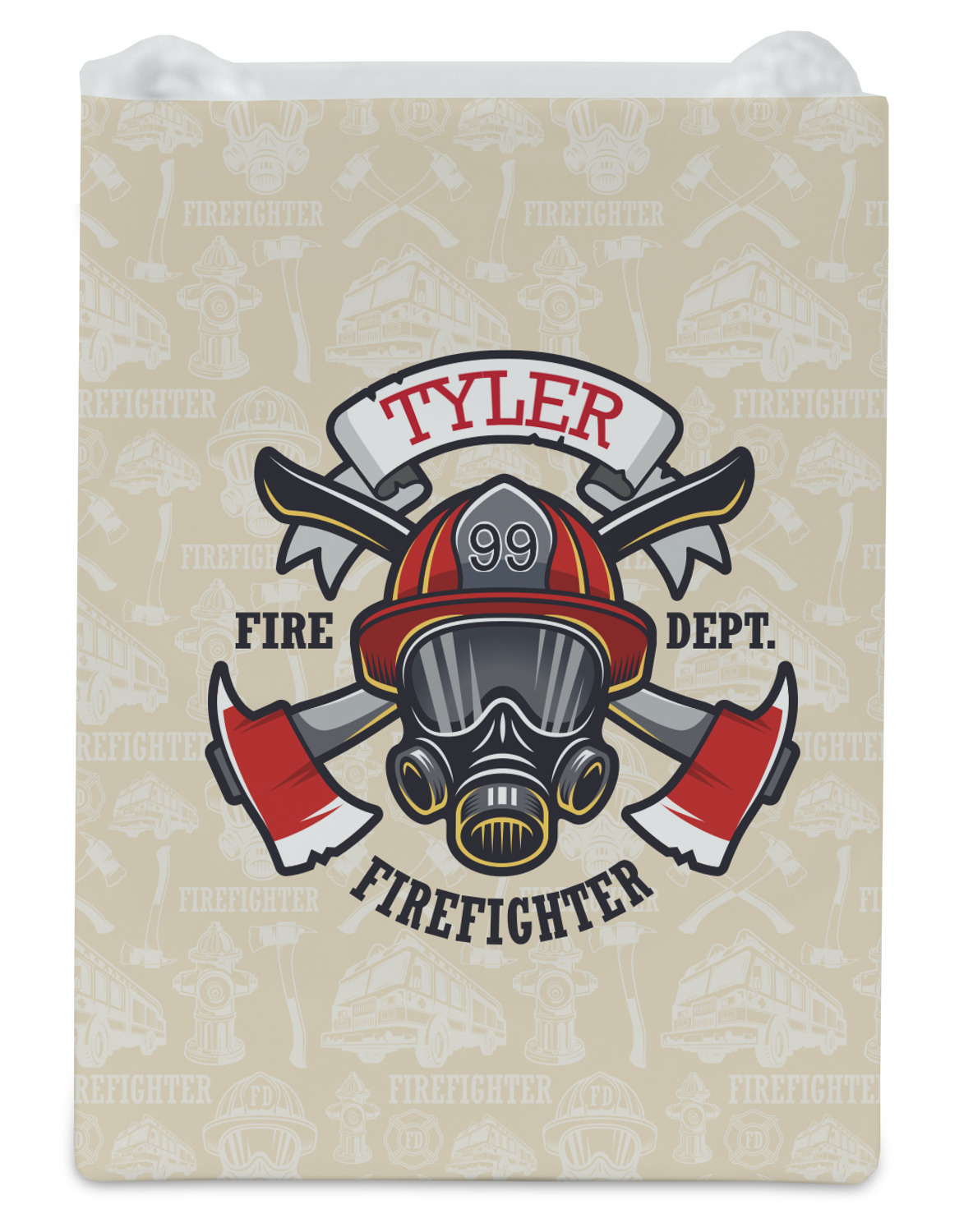 This design features a beautiful illustration of a firefighter's gear with axes. The top banner is where your personalization goes and underneath it says "Firefighter." The main colors are red and grey. The background is a cream and light cream color and has all kinds of fun firefighter symbols and illustrations. This is the perfect way to say thank you to the firefighter in your life.