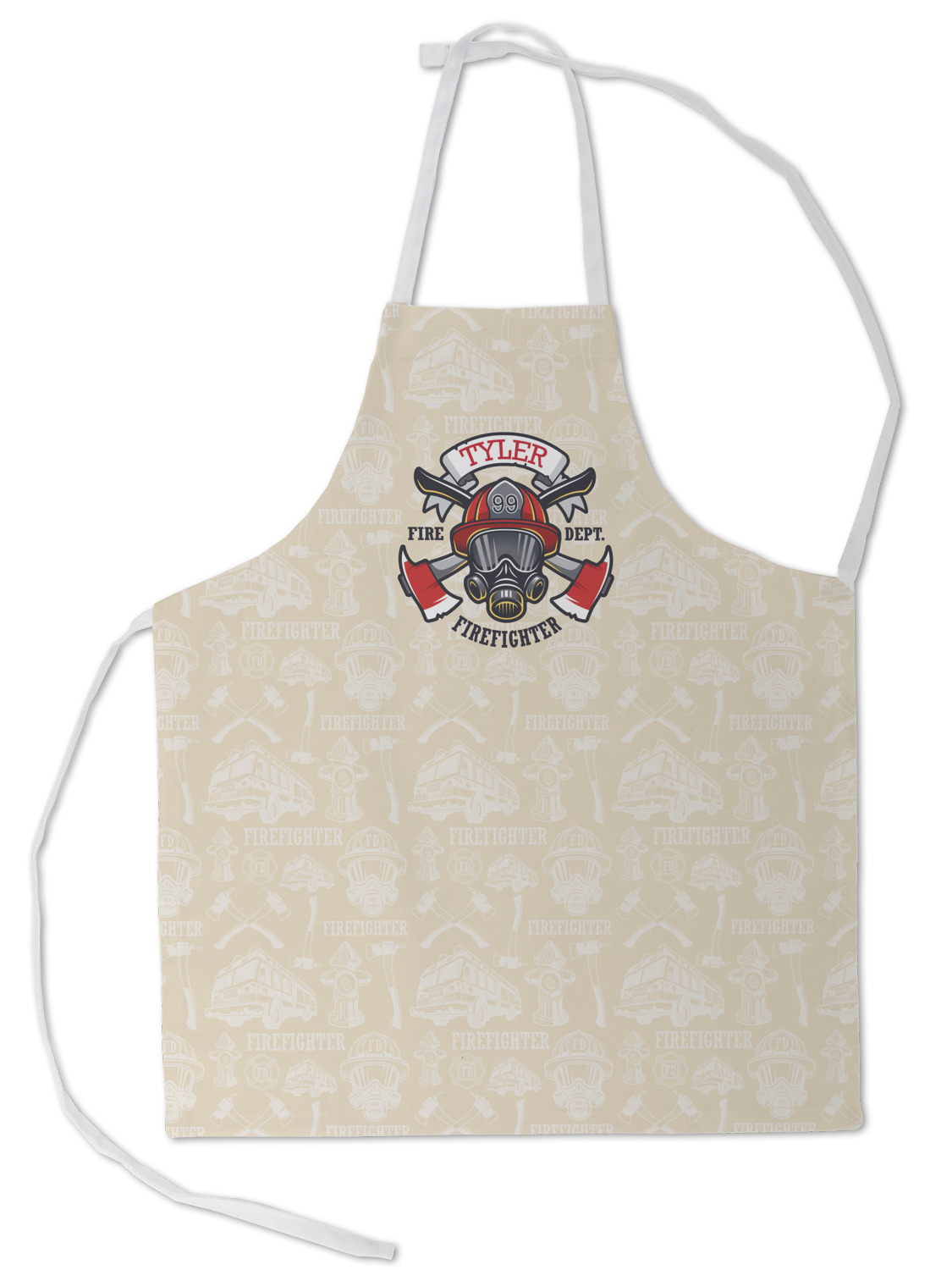 This design features a beautiful illustration of a firefighter's gear with axes. The top banner is where your personalization goes and underneath it says "Firefighter." The main colors are red and grey. The background is a cream and light cream color and has all kinds of fun firefighter symbols and illustrations. This is the perfect way to say thank you to the firefighter in your life.