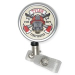 This design features a beautiful illustration of a firefighter's gear with axes. The top banner is where your personalization goes and underneath it says "Firefighter." The main colors are red and grey. The background is a cream and light cream color and has all kinds of fun firefighter symbols and illustrations. This is the perfect way to say thank you to the firefighter in your life.