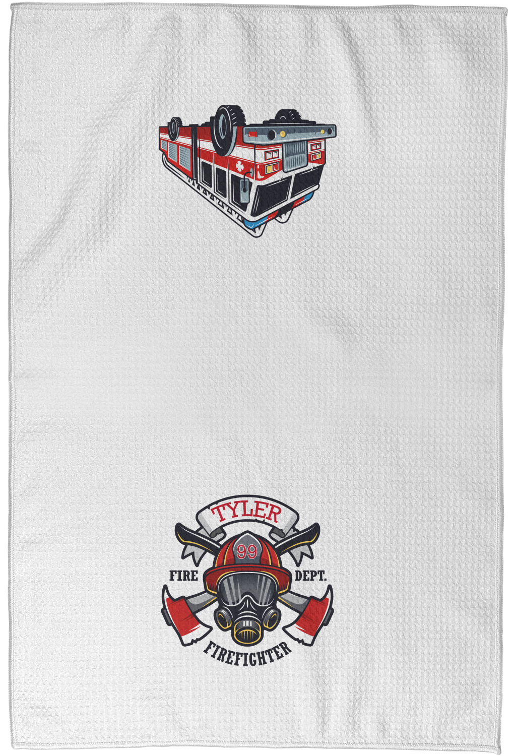 Each waffle weave kitchen towel is approximately 16 x 24 inches with your design printed on one side and the back is white.