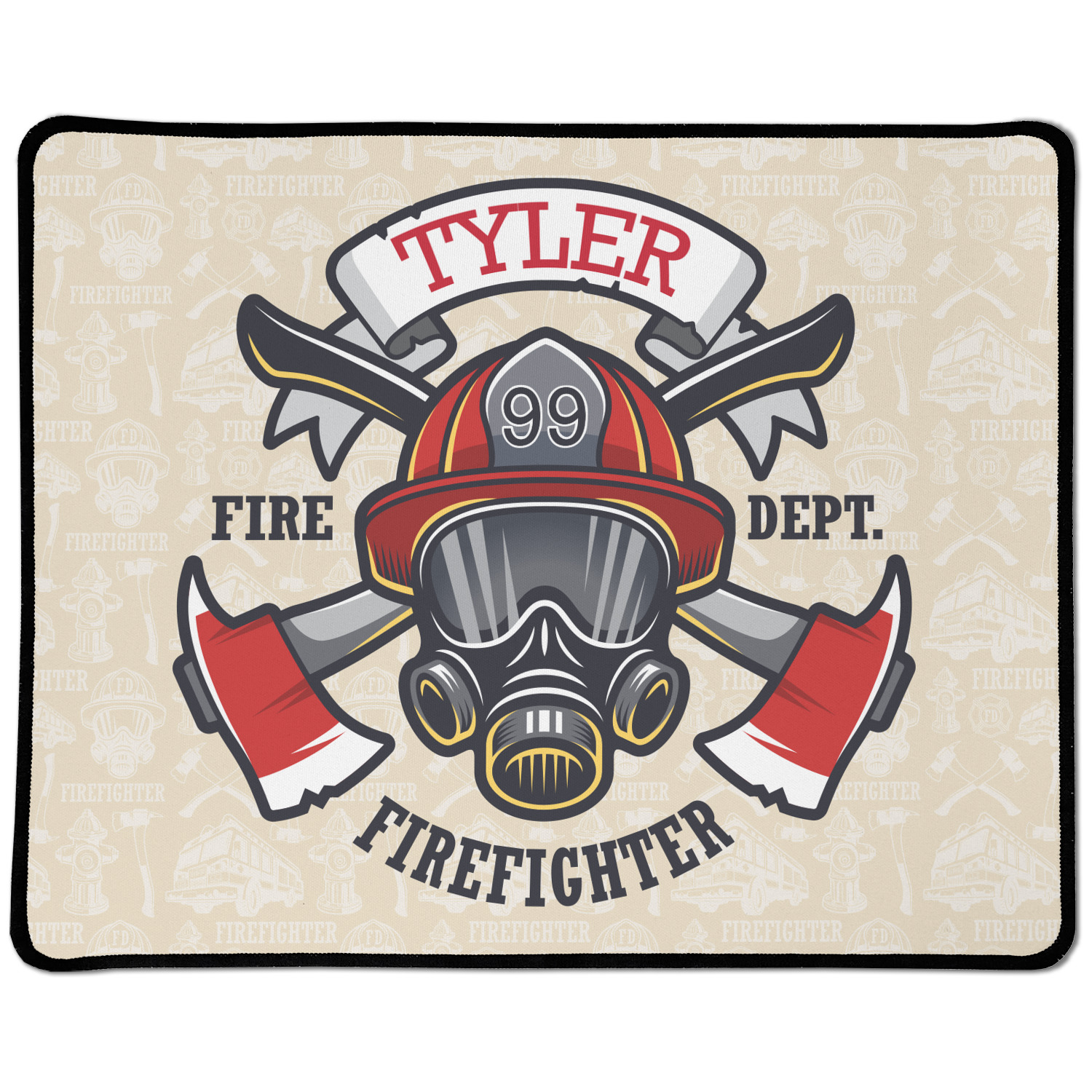 This design features a beautiful illustration of a firefighter's gear with axes. The top banner is where your personalization goes and underneath it says "Firefighter." The main colors are red and grey. The background is a cream and light cream color and has all kinds of fun firefighter symbols and illustrations. This is the perfect way to say thank you to the firefighter in your life.
