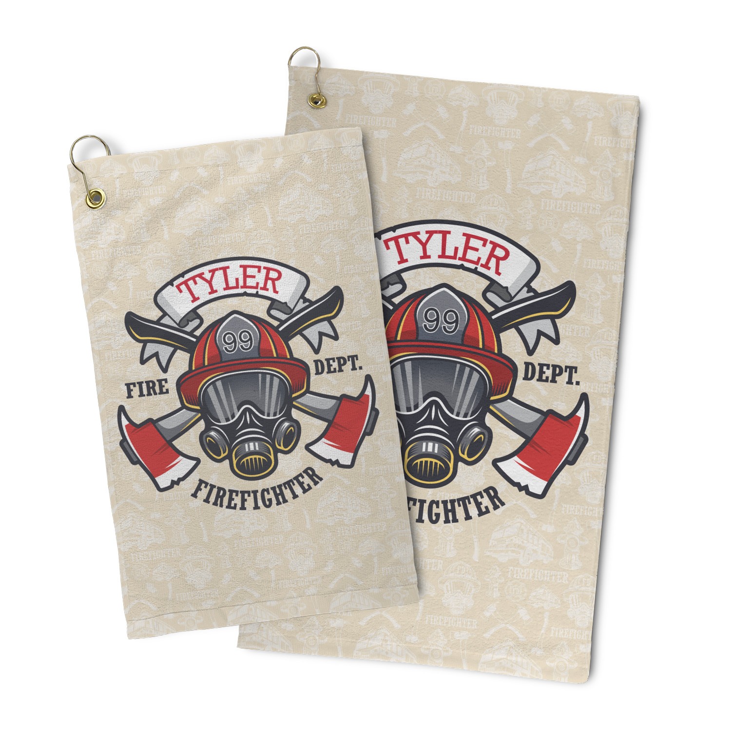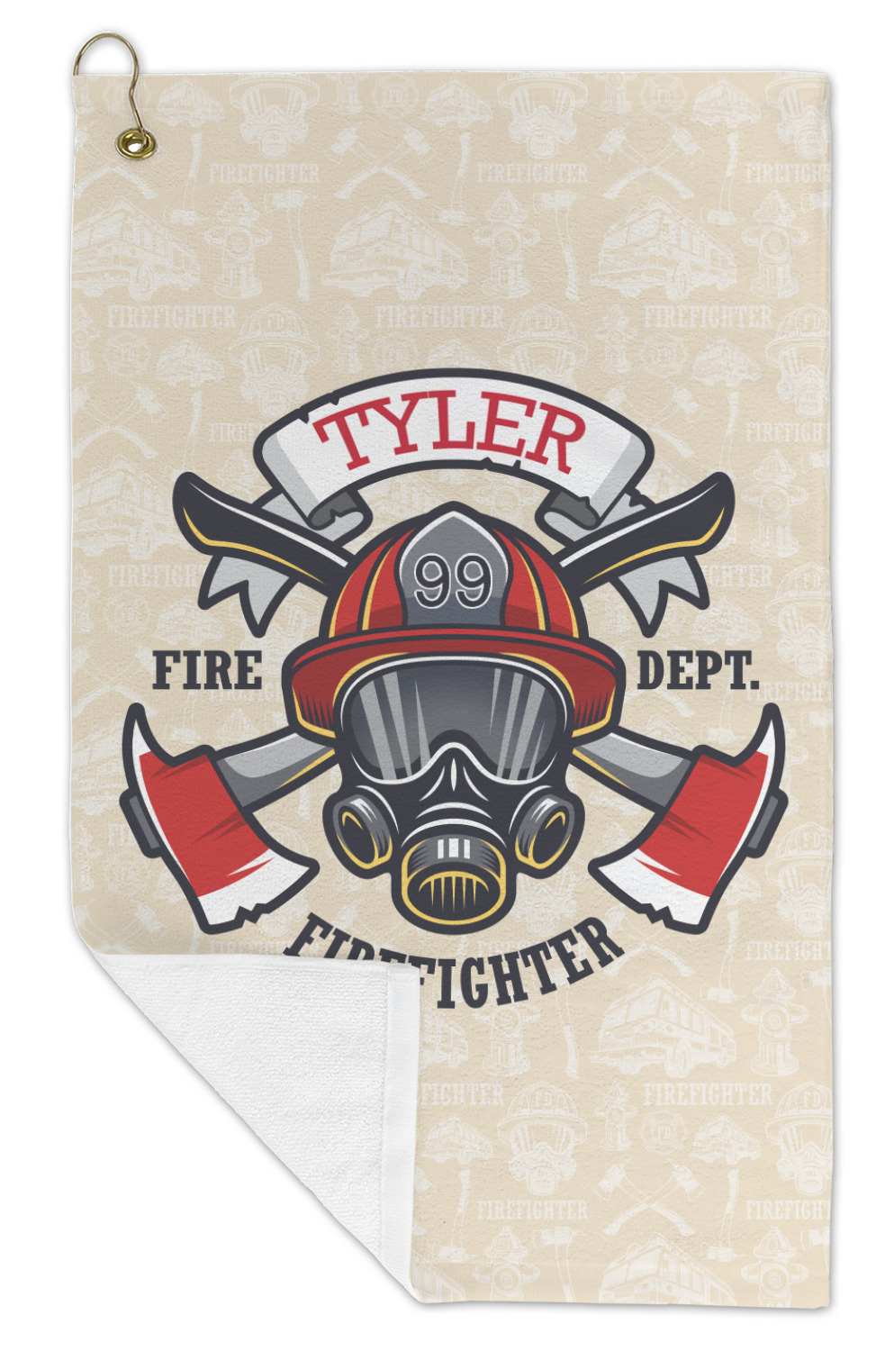 This design features a beautiful illustration of a firefighter's gear with axes. The top banner is where your personalization goes and underneath it says "Firefighter." The main colors are red and grey. The background is a cream and light cream color and has all kinds of fun firefighter symbols and illustrations. This is the perfect way to say thank you to the firefighter in your life.