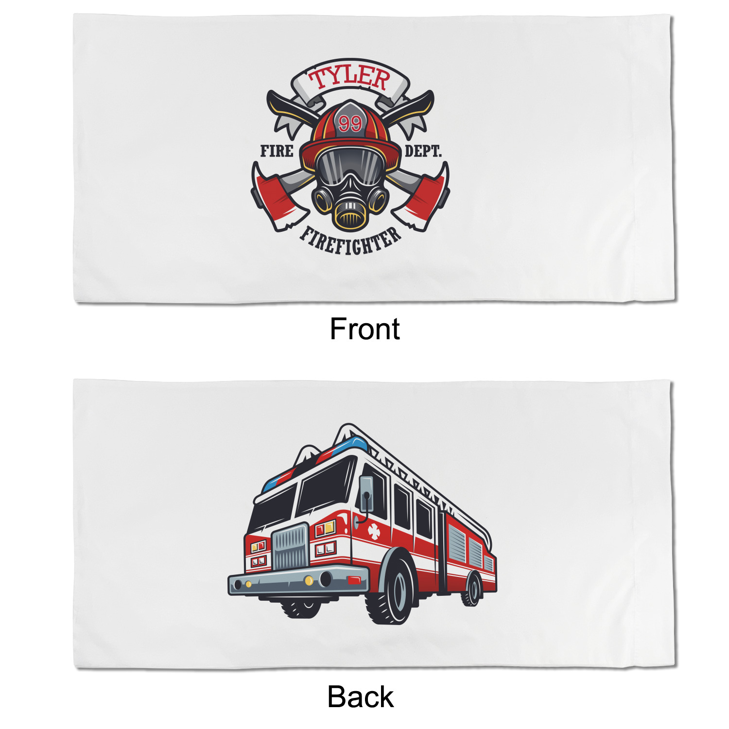 This design features a beautiful illustration of a firefighter's gear with axes. The top banner is where your personalization goes and underneath it says "Firefighter." The main colors are red and grey. The background is a cream and light cream color and has all kinds of fun firefighter symbols and illustrations. This is the perfect way to say thank you to the firefighter in your life.