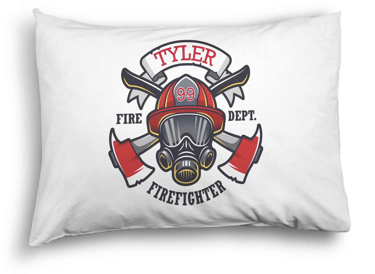 This design features a beautiful illustration of a firefighter's gear with axes. The top banner is where your personalization goes and underneath it says "Firefighter." The main colors are red and grey. The background is a cream and light cream color and has all kinds of fun firefighter symbols and illustrations. This is the perfect way to say thank you to the firefighter in your life.