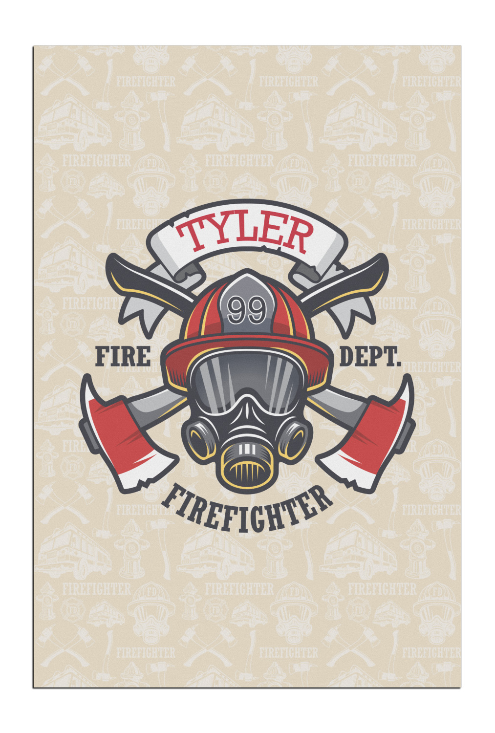 This design features a beautiful illustration of a firefighter's gear with axes. The top banner is where your personalization goes and underneath it says "Firefighter." The main colors are red and grey. The background is a cream and light cream color and has all kinds of fun firefighter symbols and illustrations. This is the perfect way to say thank you to the firefighter in your life.