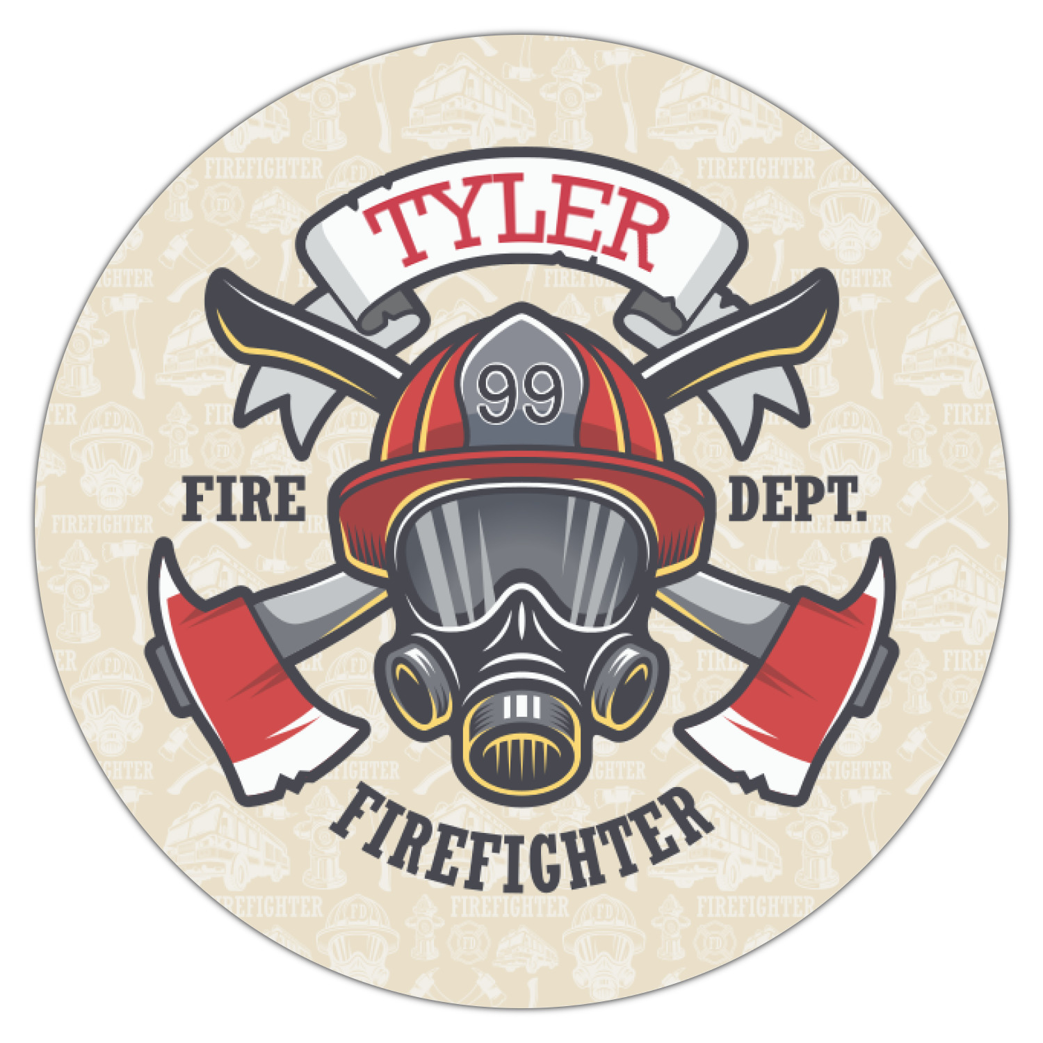 This design features a beautiful illustration of a firefighter's gear with axes. The top banner is where your personalization goes and underneath it says "Firefighter." The main colors are red and grey. The background is a cream and light cream color and has all kinds of fun firefighter symbols and illustrations. This is the perfect way to say thank you to the firefighter in your life.