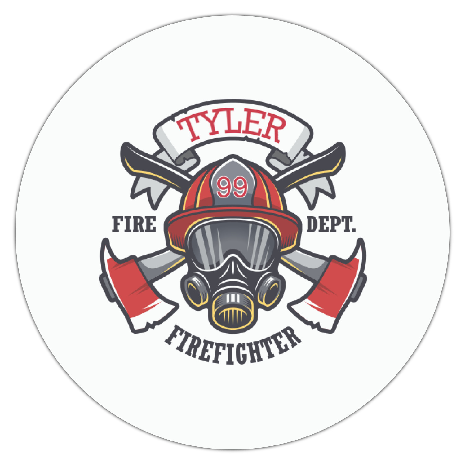 This design features a beautiful illustration of a firefighter's gear with axes. The top banner is where your personalization goes and underneath it says "Firefighter." The main colors are red and grey. The background is a cream and light cream color and has all kinds of fun firefighter symbols and illustrations. This is the perfect way to say thank you to the firefighter in your life.