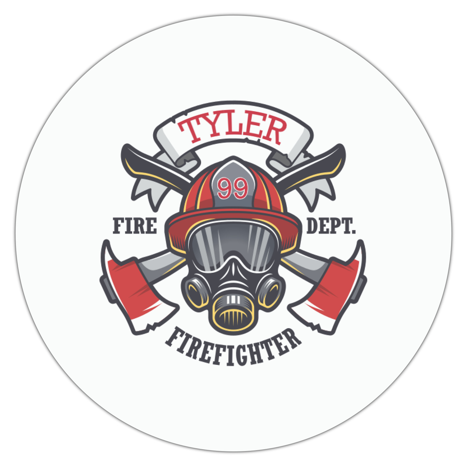 This design features a beautiful illustration of a firefighter's gear with axes. The top banner is where your personalization goes and underneath it says "Firefighter." The main colors are red and grey. The background is a cream and light cream color and has all kinds of fun firefighter symbols and illustrations. This is the perfect way to say thank you to the firefighter in your life.