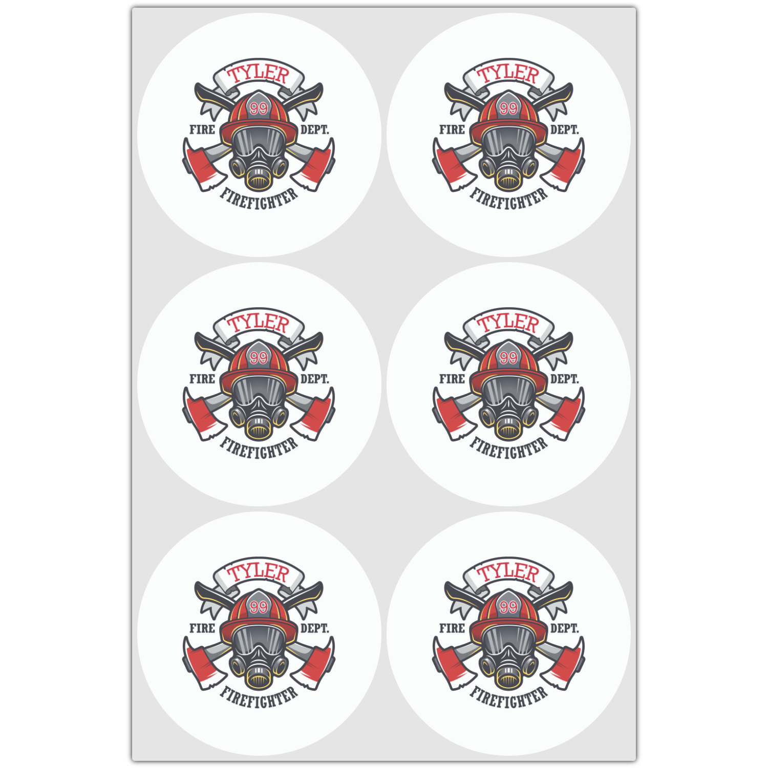 This design features a beautiful illustration of a firefighter's gear with axes. The top banner is where your personalization goes and underneath it says "Firefighter." The main colors are red and grey. The background is a cream and light cream color and has all kinds of fun firefighter symbols and illustrations. This is the perfect way to say thank you to the firefighter in your life.