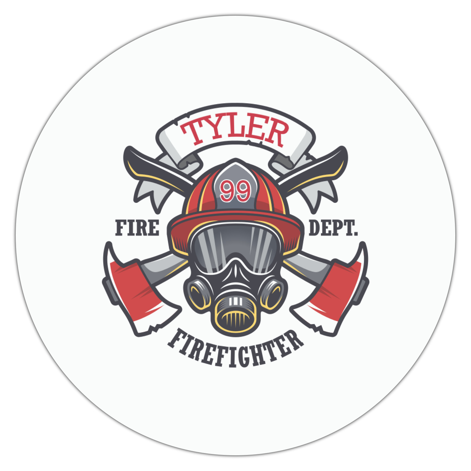This design features a beautiful illustration of a firefighter's gear with axes. The top banner is where your personalization goes and underneath it says "Firefighter." The main colors are red and grey. The background is a cream and light cream color and has all kinds of fun firefighter symbols and illustrations. This is the perfect way to say thank you to the firefighter in your life.