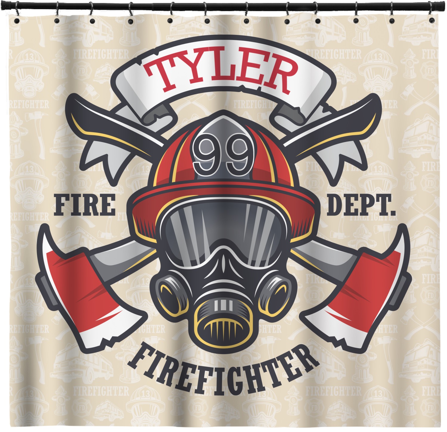 This design features a beautiful illustration of a firefighter's gear with axes. The top banner is where your personalization goes and underneath it says "Firefighter." The main colors are red and grey. The background is a cream and light cream color and has all kinds of fun firefighter symbols and illustrations. This is the perfect way to say thank you to the firefighter in your life.