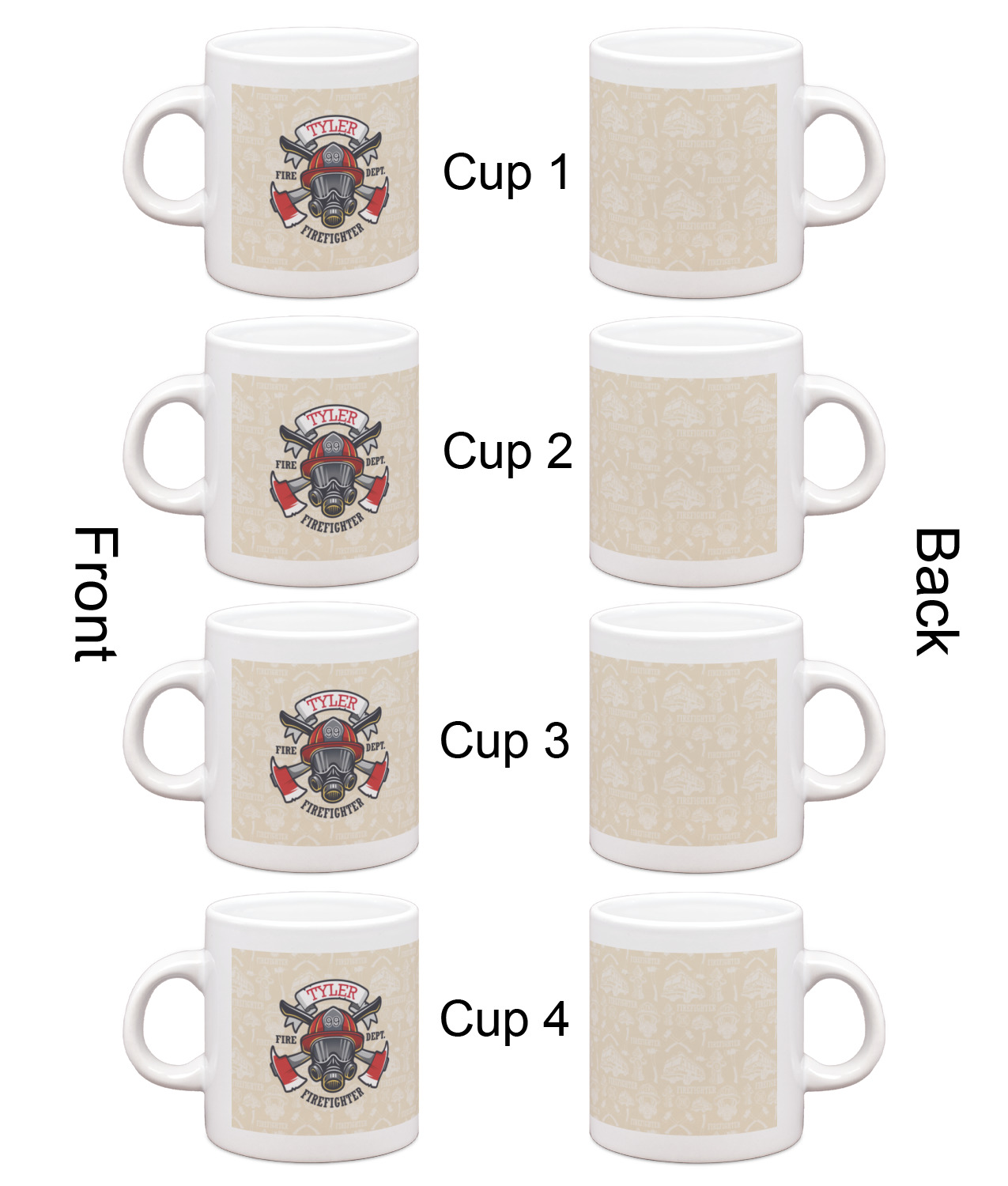 Each of our espresso mugs is a ceramic material sure to keep your drink warm. Personalize one cup for yourself, or order a set of 4! Its the perfect little gift for any coffee lover! We carry two sizes for you to personalize - 3 oz. (approx. 3.25" x 2.325" x 2.625") or 6 oz. (approx. 4" x 2.9" x 2.9"). Our 3 oz. mug is perfect for that single shot espresso while our 6 oz. mug can be your next favorite cappuccino cup holding two shots of espresso!