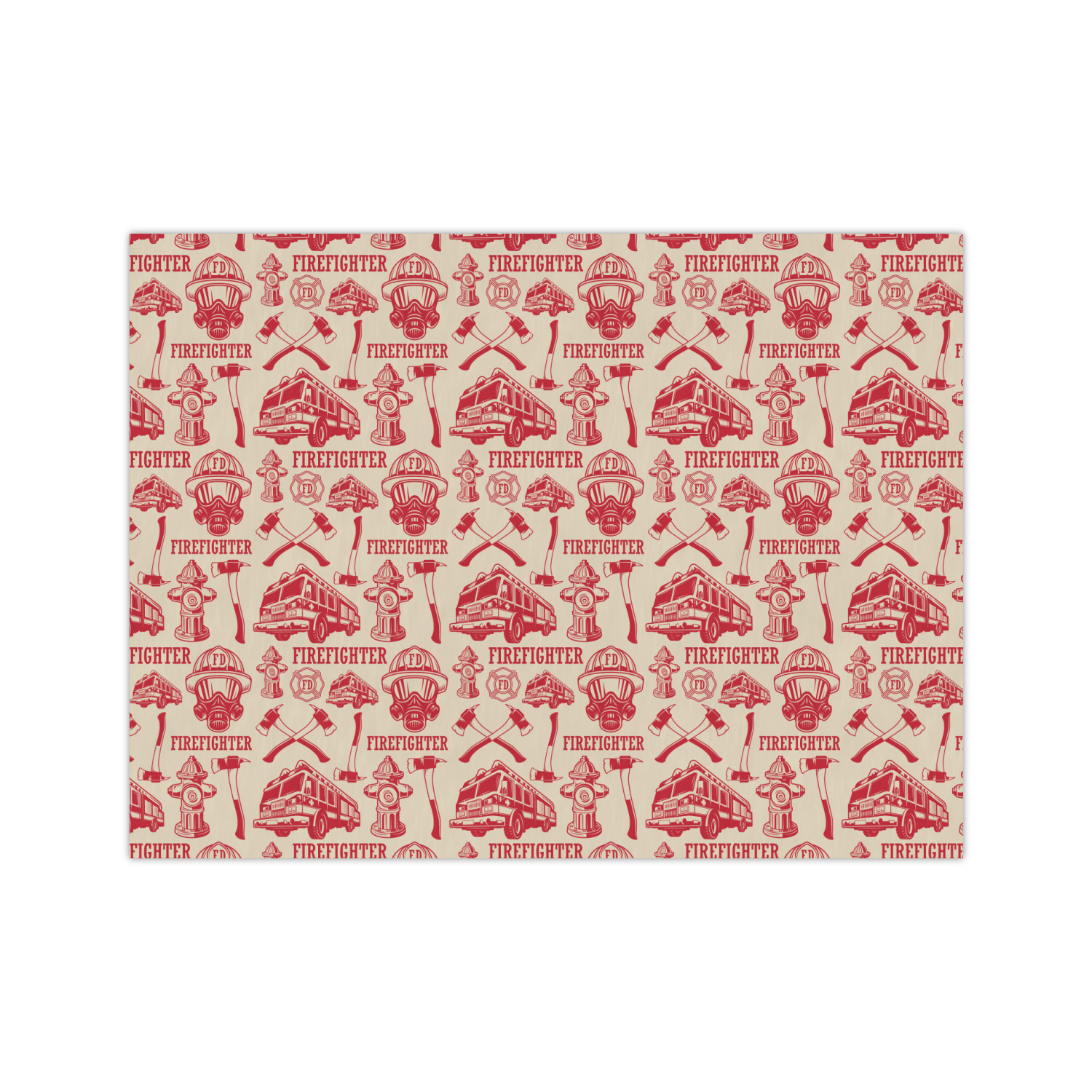This design features a beautiful illustration of a firefighter's gear with axes. The top banner is where your personalization goes and underneath it says "Firefighter." The main colors are red and grey. The background is a cream and light cream color and has all kinds of fun firefighter symbols and illustrations. This is the perfect way to say thank you to the firefighter in your life.