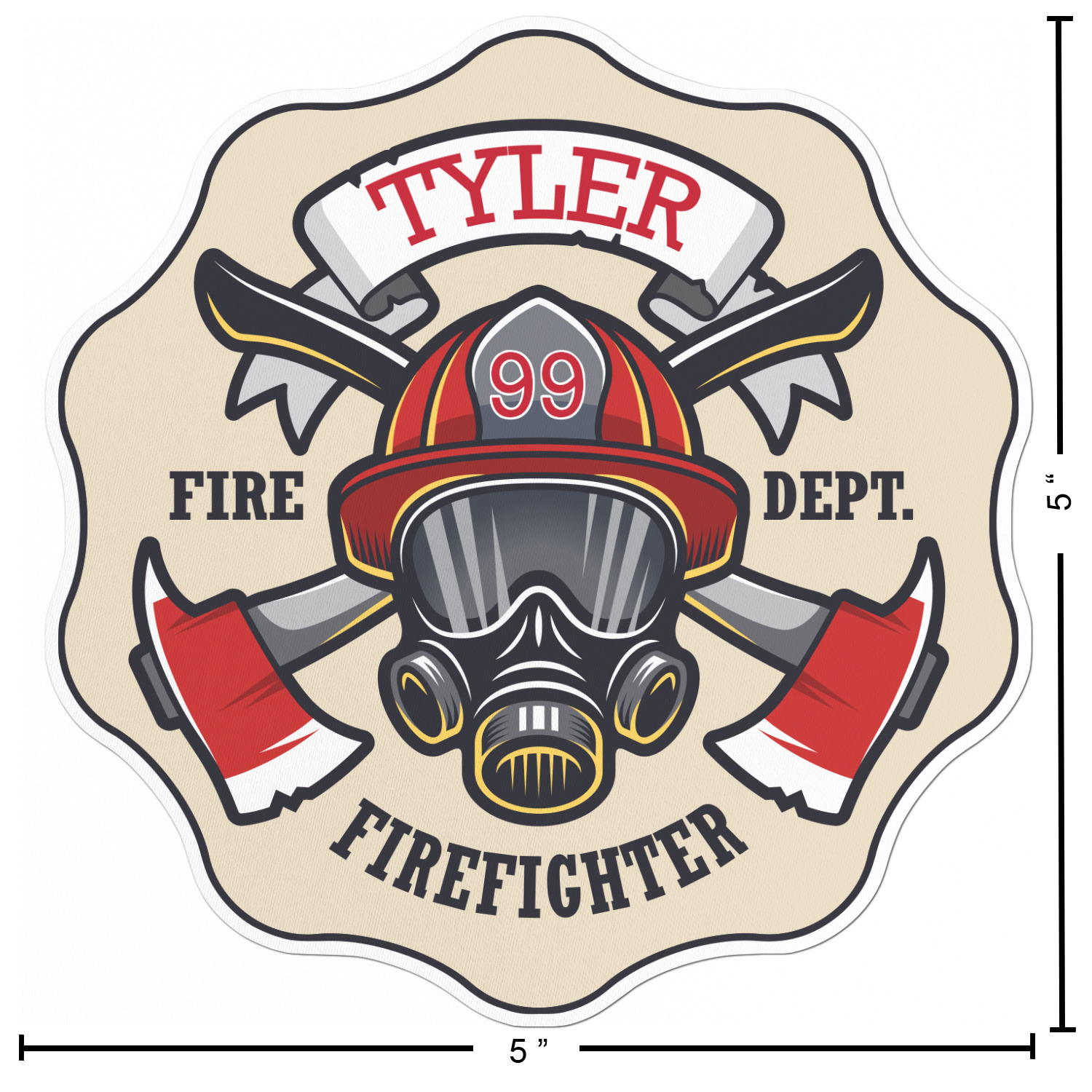 This design features a beautiful illustration of a firefighter's gear with axes. The top banner is where your personalization goes and underneath it says "Firefighter." The main colors are red and grey. The background is a cream and light cream color and has all kinds of fun firefighter symbols and illustrations. This is the perfect way to say thank you to the firefighter in your life.