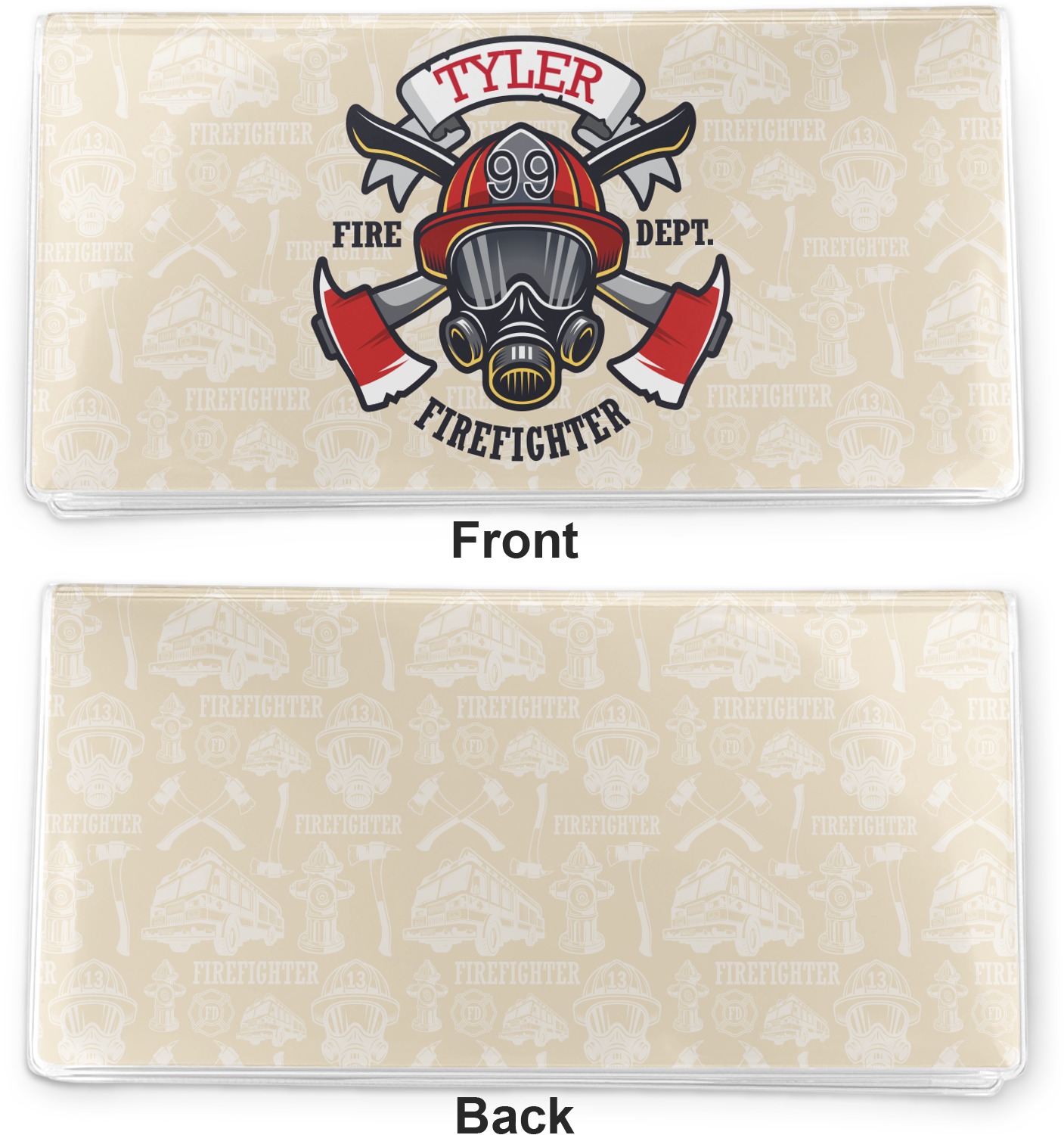 This design features a beautiful illustration of a firefighter's gear with axes. The top banner is where your personalization goes and underneath it says "Firefighter." The main colors are red and grey. The background is a cream and light cream color and has all kinds of fun firefighter symbols and illustrations. This is the perfect way to say thank you to the firefighter in your life.