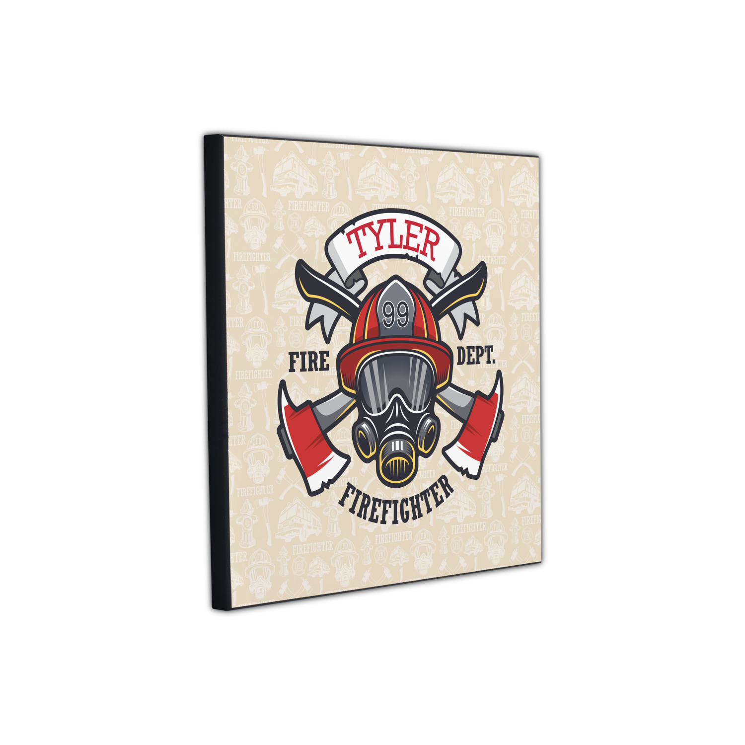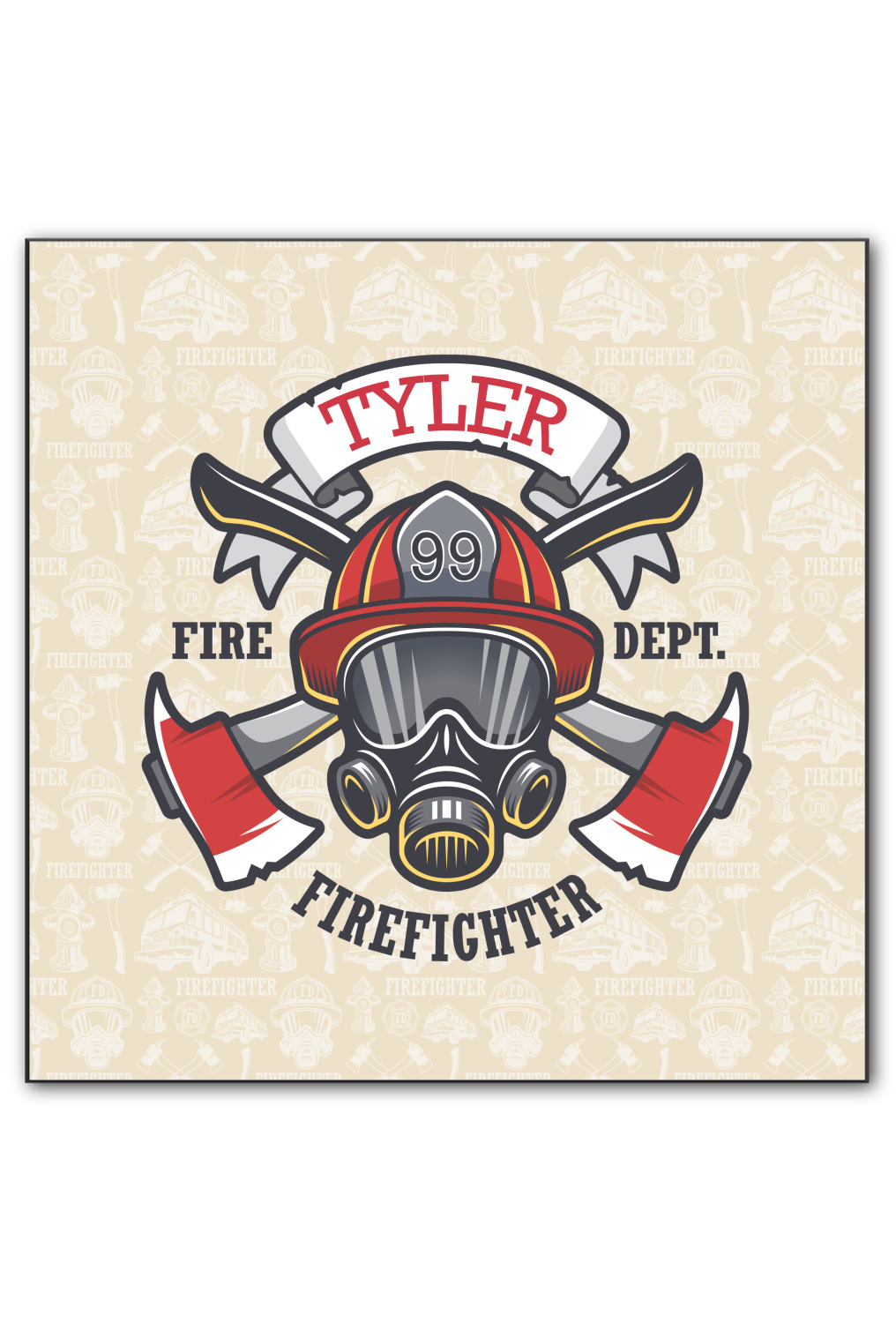 This design features a beautiful illustration of a firefighter's gear with axes. The top banner is where your personalization goes and underneath it says "Firefighter." The main colors are red and grey. The background is a cream and light cream color and has all kinds of fun firefighter symbols and illustrations. This is the perfect way to say thank you to the firefighter in your life.