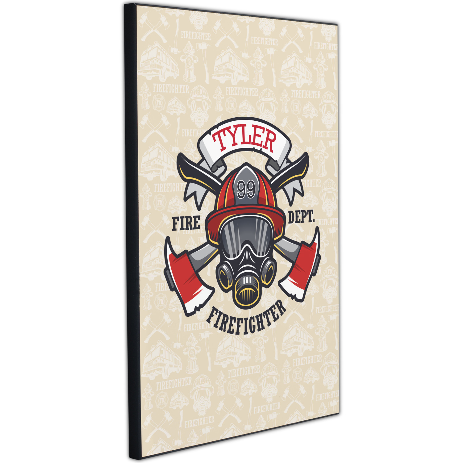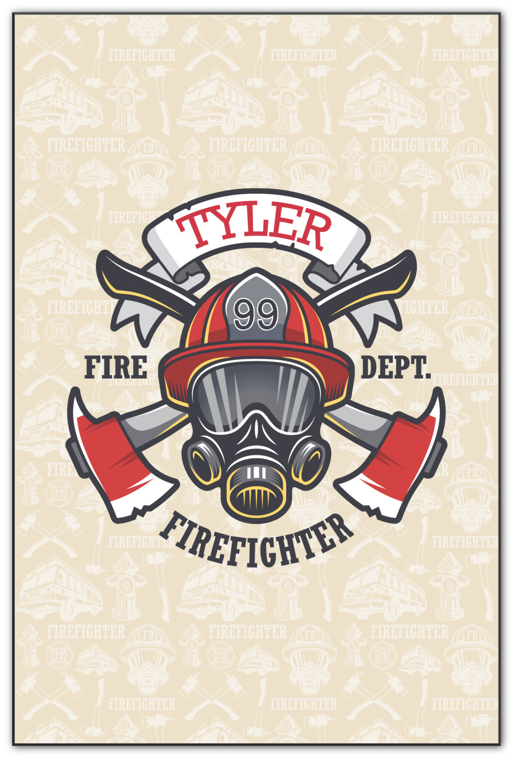 This design features a beautiful illustration of a firefighter's gear with axes. The top banner is where your personalization goes and underneath it says "Firefighter." The main colors are red and grey. The background is a cream and light cream color and has all kinds of fun firefighter symbols and illustrations. This is the perfect way to say thank you to the firefighter in your life.