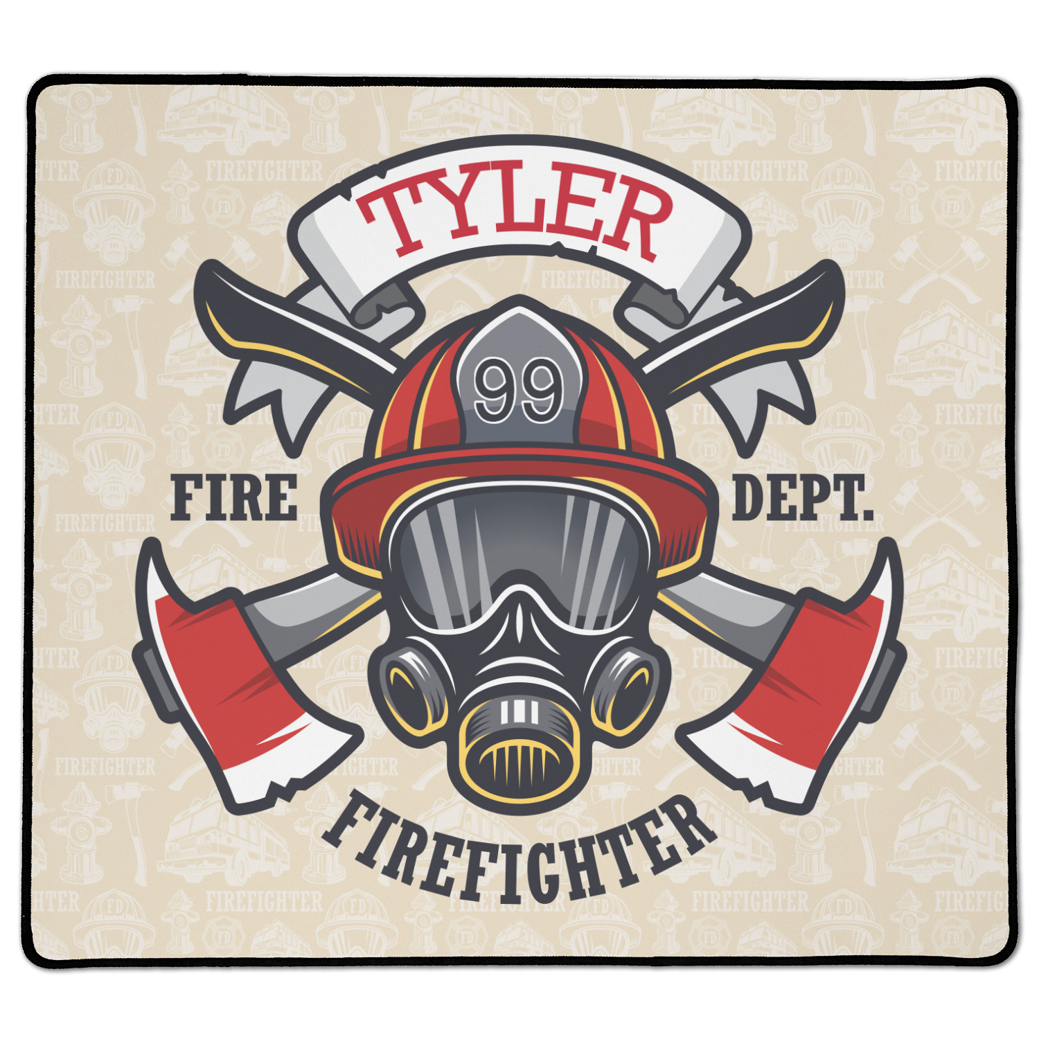 This design features a beautiful illustration of a firefighter's gear with axes. The top banner is where your personalization goes and underneath it says "Firefighter." The main colors are red and grey. The background is a cream and light cream color and has all kinds of fun firefighter symbols and illustrations. This is the perfect way to say thank you to the firefighter in your life.
