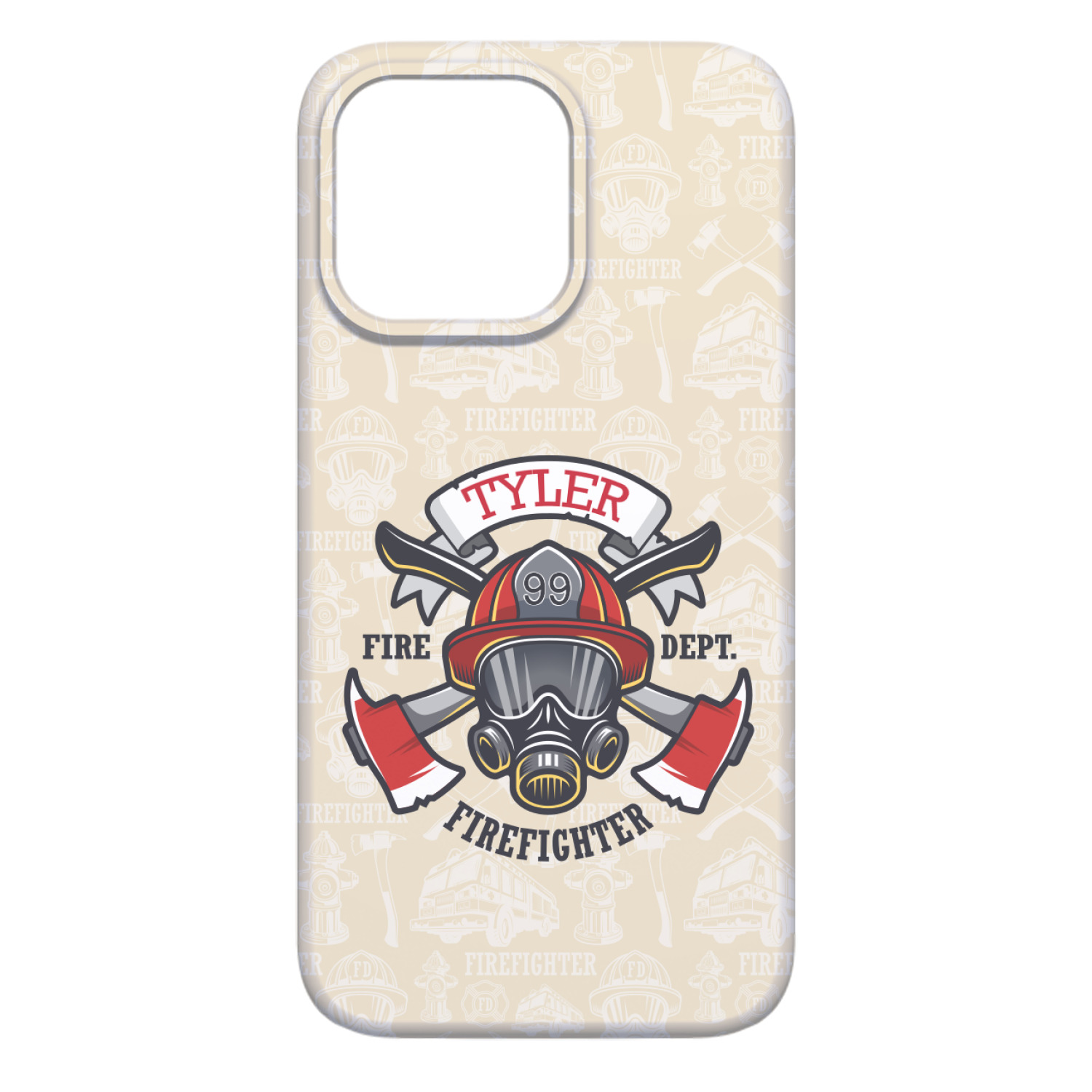 This design features a beautiful illustration of a firefighter's gear with axes. The top banner is where your personalization goes and underneath it says "Firefighter." The main colors are red and grey. The background is a cream and light cream color and has all kinds of fun firefighter symbols and illustrations. This is the perfect way to say thank you to the firefighter in your life.