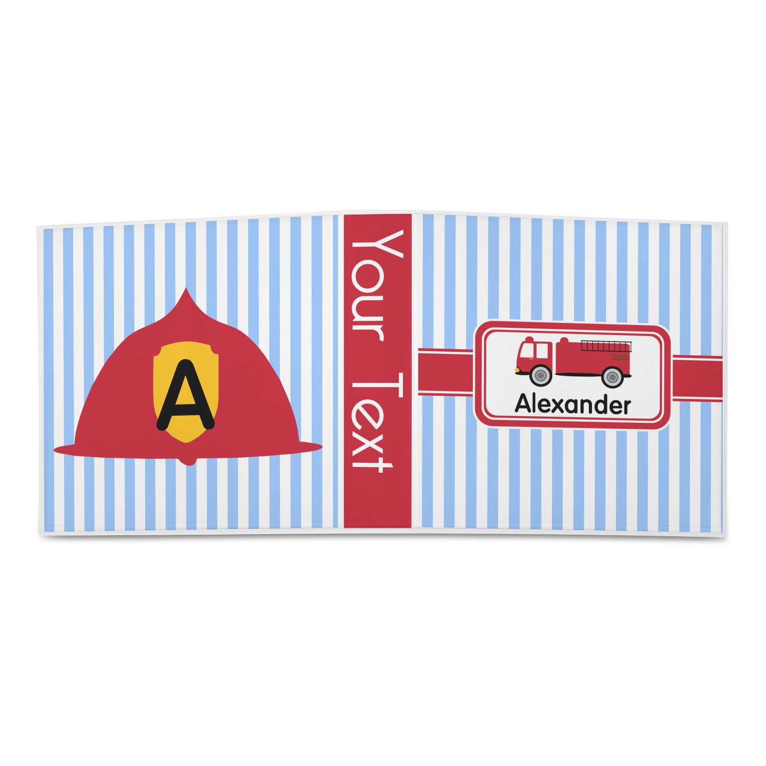 What little boy doesn't dream about growing up and becoming a fire fighter? Set on a classic striped blue and white background, this design featuring a snazzy firetruck is perfect for your little fireman-to-be.