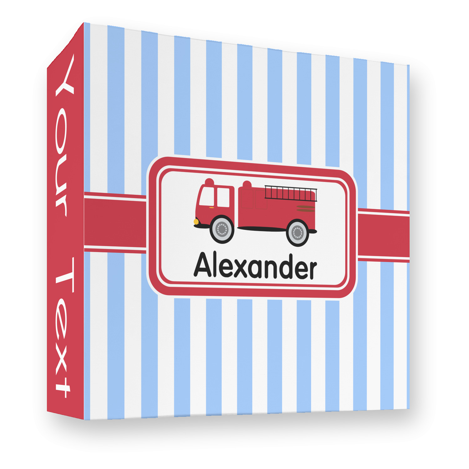 What little boy doesn't dream about growing up and becoming a fire fighter? Set on a classic striped blue and white background, this design featuring a snazzy firetruck is perfect for your little fireman-to-be.