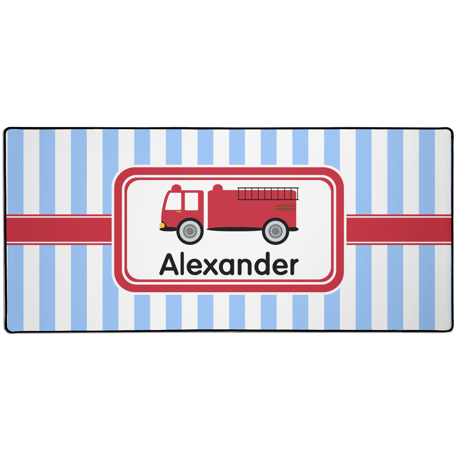 What little boy doesn't dream about growing up and becoming a fire fighter? Set on a classic striped blue and white background, this design featuring a snazzy firetruck is perfect for your little fireman-to-be.