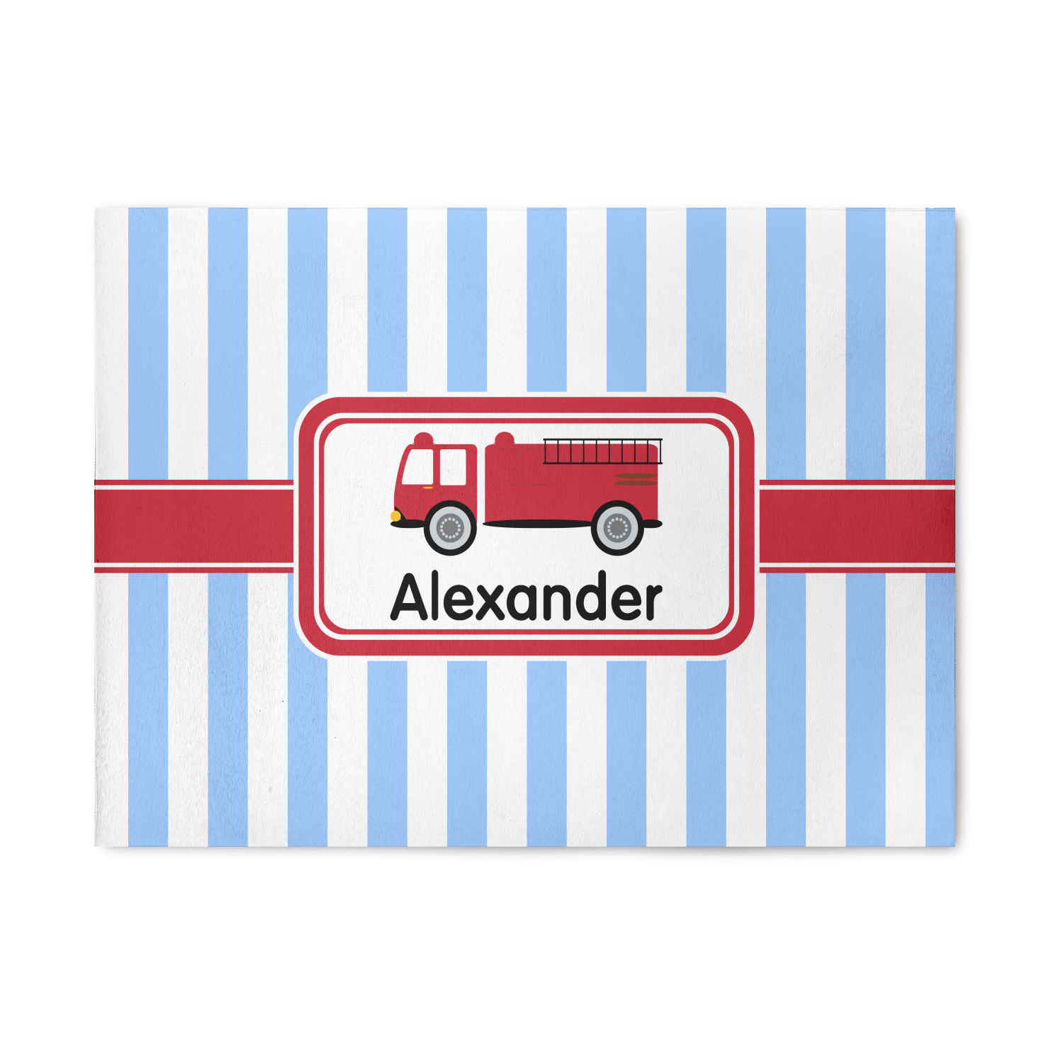 What little boy doesn't dream about growing up and becoming a fire fighter? Set on a classic striped blue and white background, this design featuring a snazzy firetruck is perfect for your little fireman-to-be.
