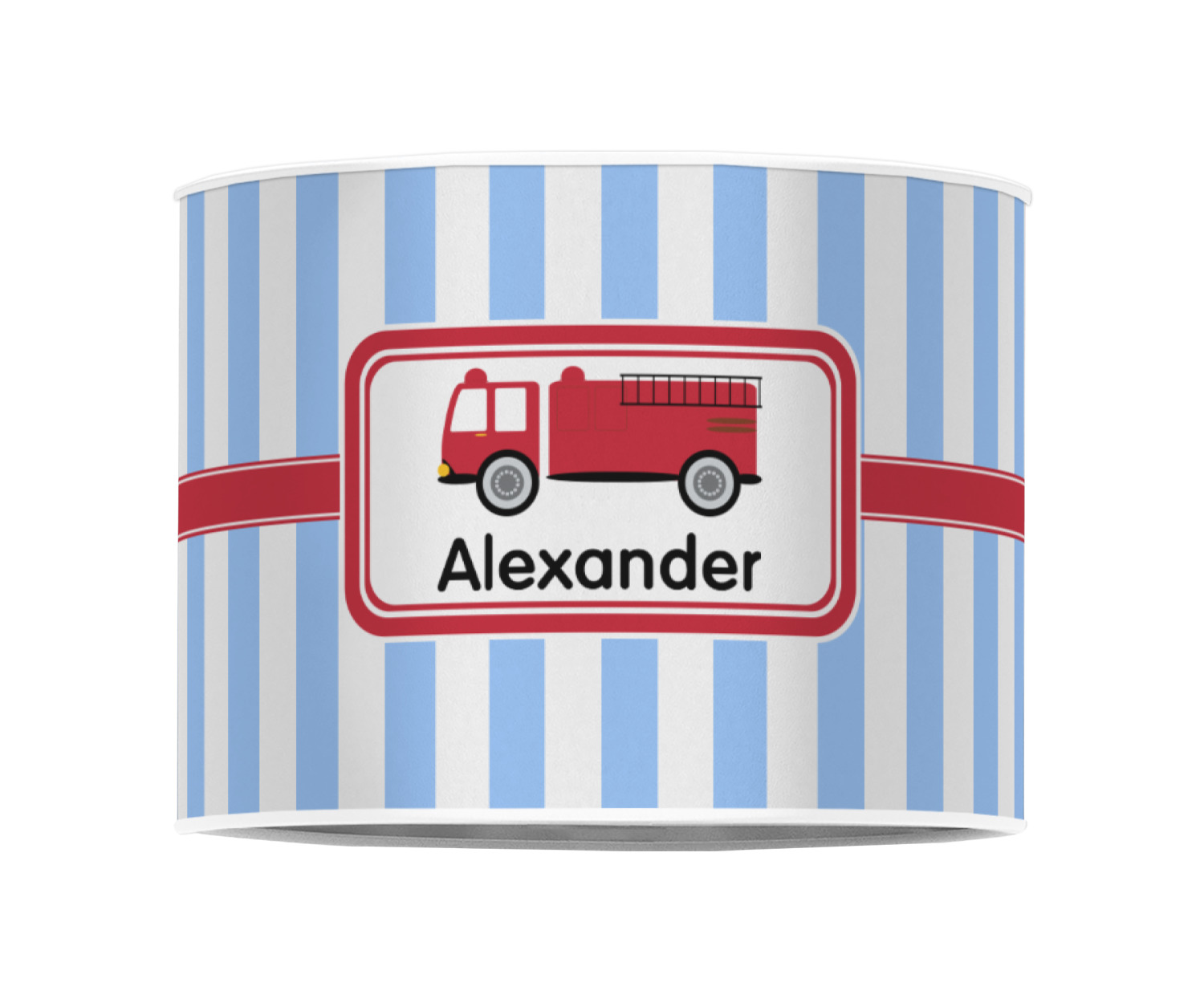What little boy doesn't dream about growing up and becoming a fire fighter? Set on a classic striped blue and white background, this design featuring a snazzy firetruck is perfect for your little fireman-to-be.