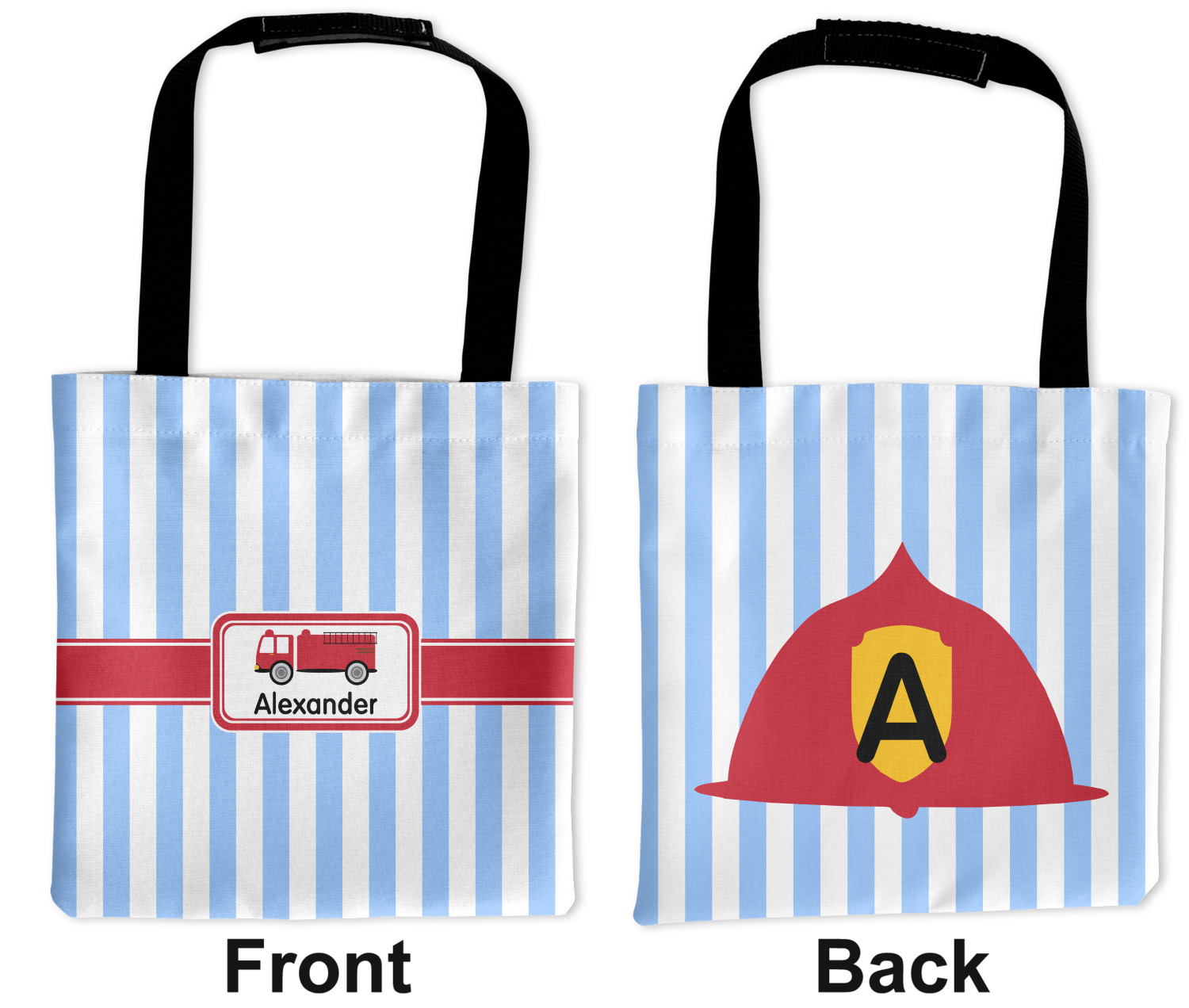 What little boy doesn't dream about growing up and becoming a fire fighter? Set on a classic striped blue and white background, this design featuring a snazzy firetruck is perfect for your little fireman-to-be.