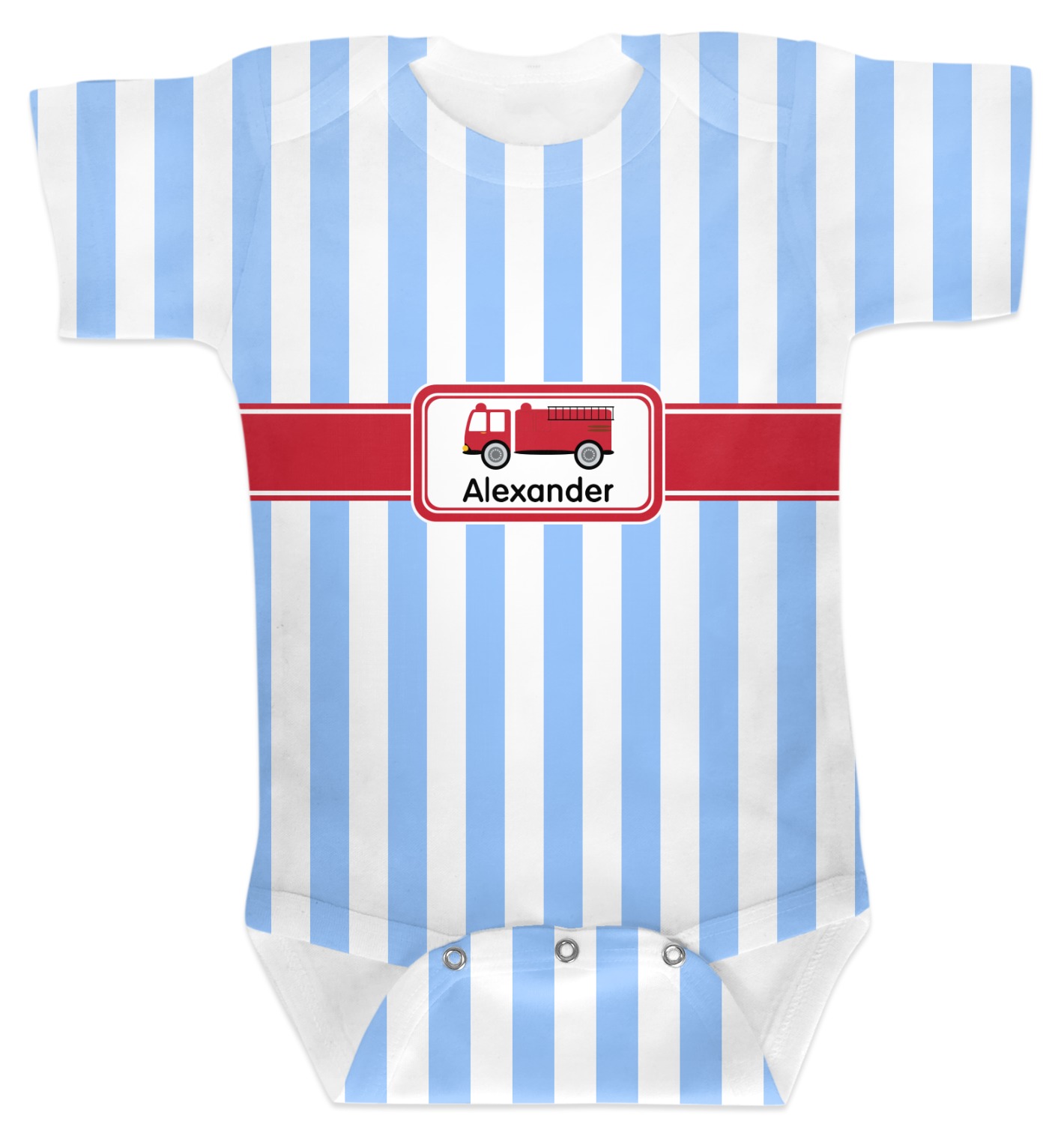 What little boy doesn't dream about growing up and becoming a fire fighter? Set on a classic striped blue and white background, this design featuring a snazzy firetruck is perfect for your little fireman-to-be.