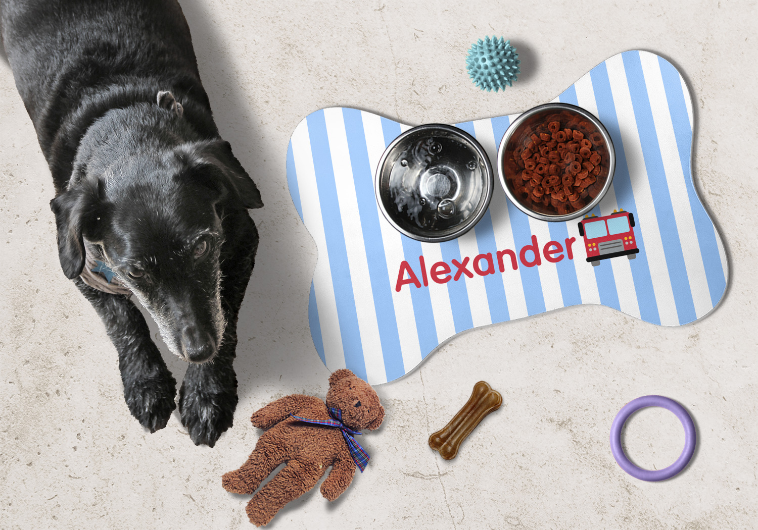 If you are purchasing a pet food mat, consider a customized dog bowl, dog collar, a bone-shaped dog tag, or any other pet supplies to match! Check out our Pet Accessories category for even more options! Craft a design that you want to extend to your eating area? Try our Home and Garden category for kitchen decor options!