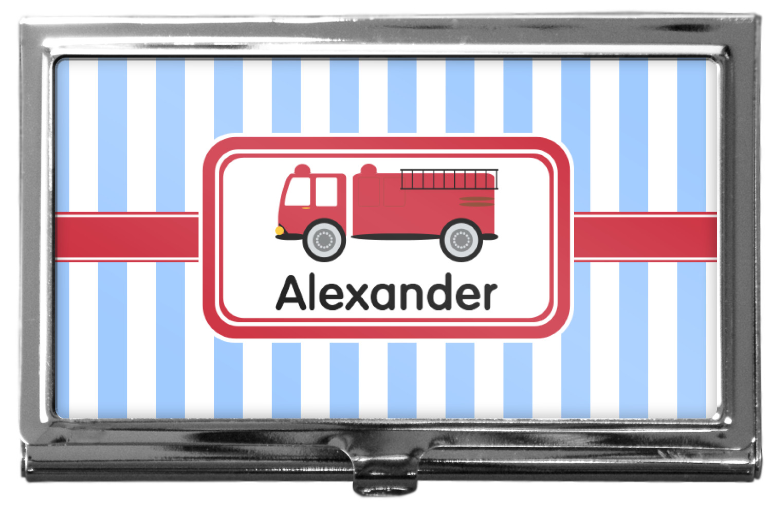 Our personalized business card holders are built from a robust, stainless steel and shaped into a sleek rectangle. At 3.75" x 2.5", and 0.25" thick, this nifty accessory holds up to 12 to 15 business cards, depending on the thickness of the cards themselves. Regardless, the skinny style makes it the perfect fit for your purse or pocket. The lid of your custom business card holder features a protruding tab to open and close your holder with a snap. To protect the mint condition of your cards, the interior of this metal business card holder is lined with a soft, felt fabric. We print your personalized design across the face of the lid.