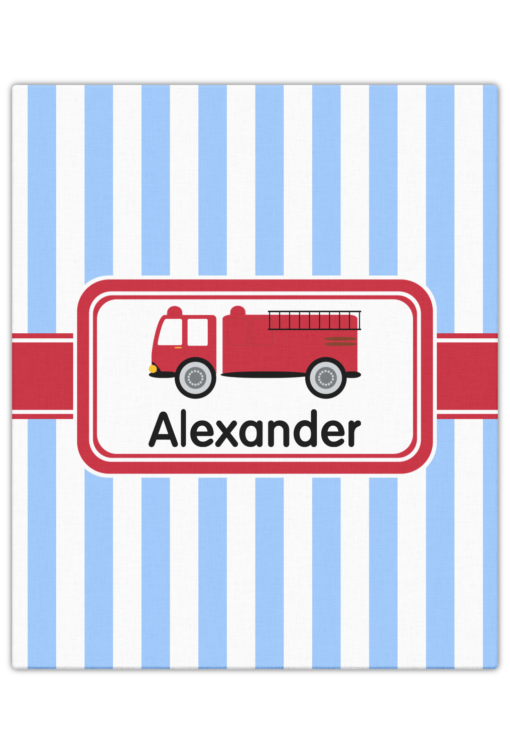 What little boy doesn't dream about growing up and becoming a fire fighter? Set on a classic striped blue and white background, this design featuring a snazzy firetruck is perfect for your little fireman-to-be.