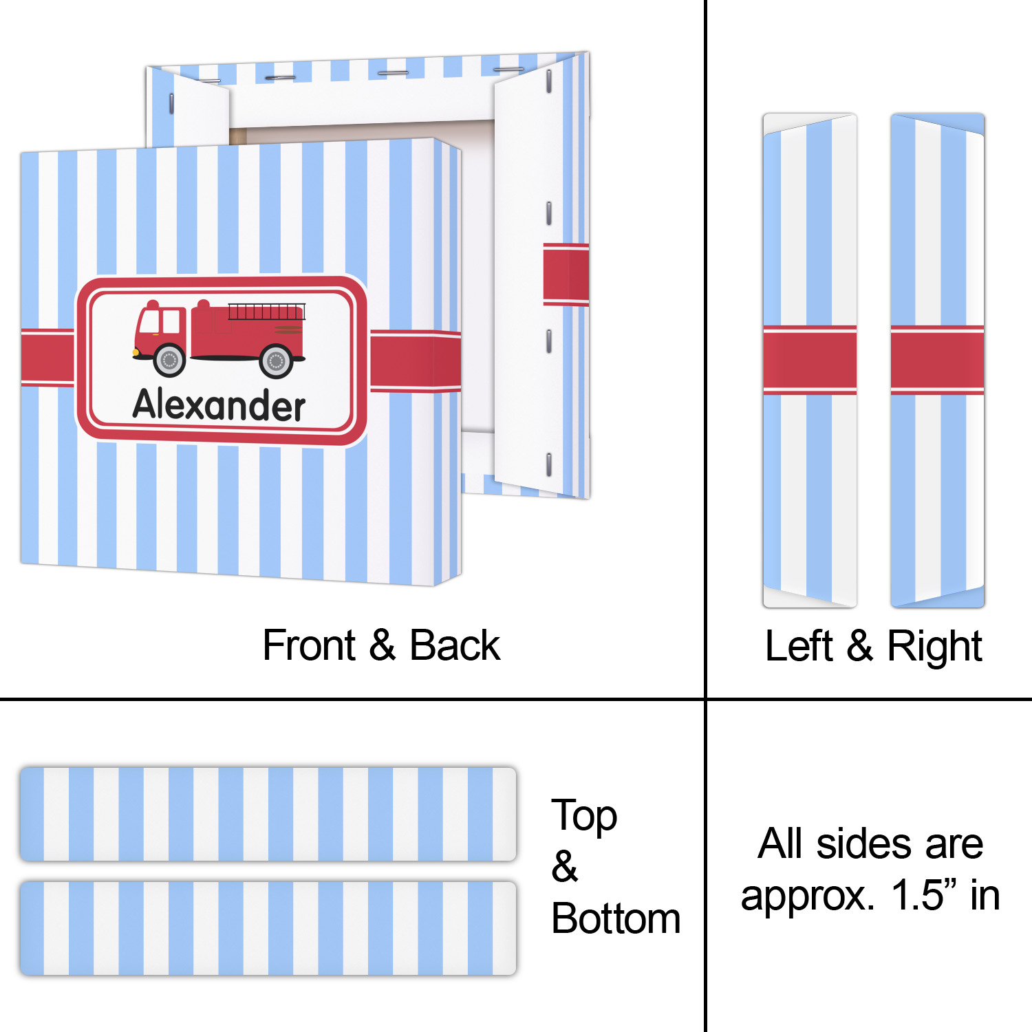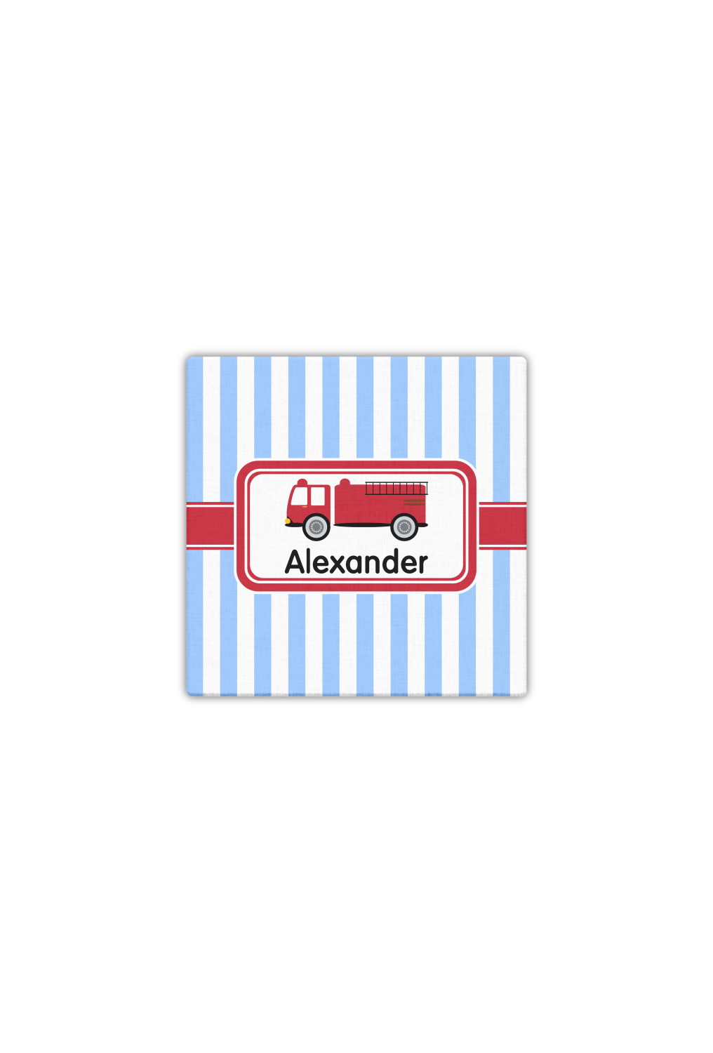 What little boy doesn't dream about growing up and becoming a fire fighter? Set on a classic striped blue and white background, this design featuring a snazzy firetruck is perfect for your little fireman-to-be.