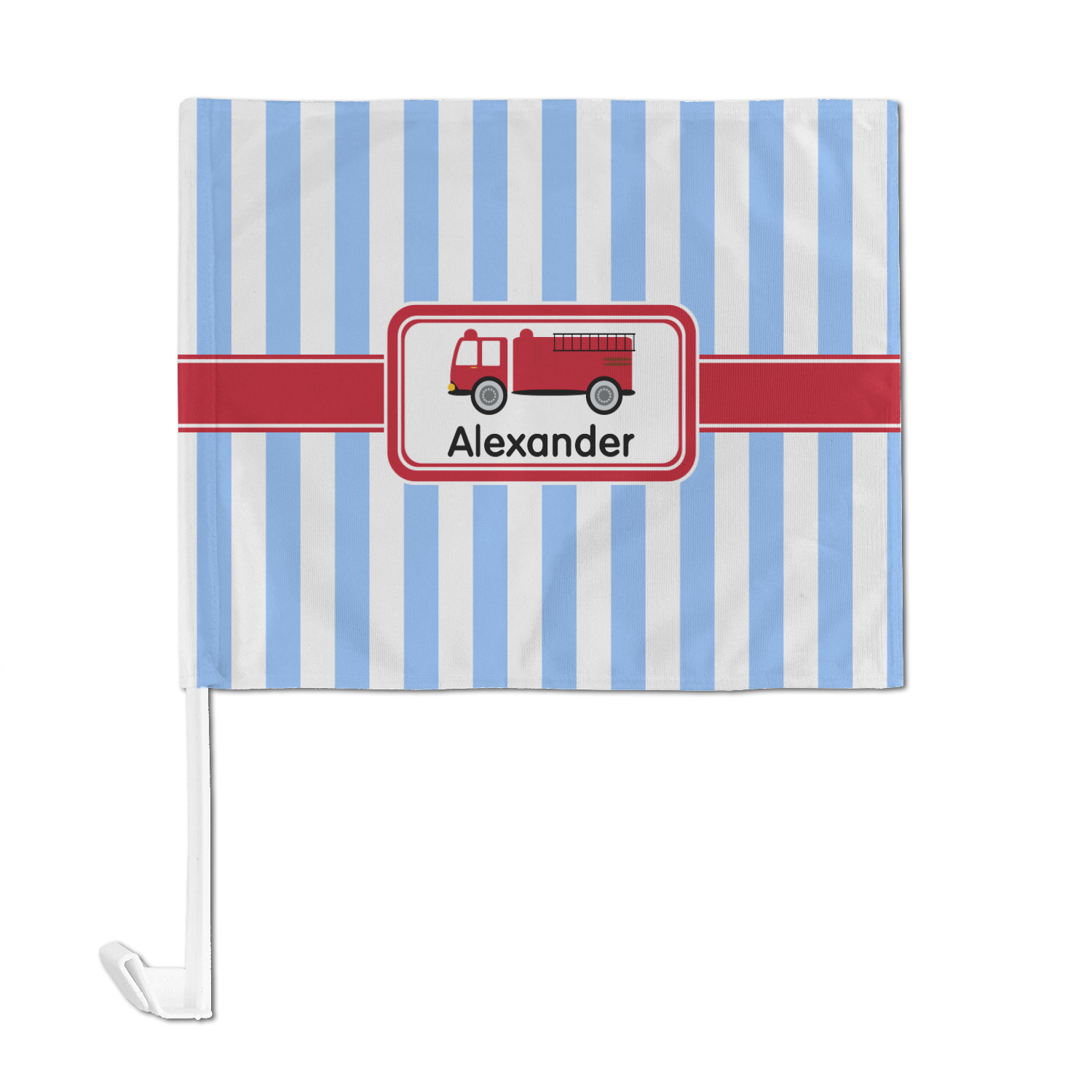 Our personalized flags are made from a durable, yet lightweight cloth that will proudly bear your logo or design of choice, while withstanding the outside elements. We have two size options - 8" x 11" and 11" x 15". Both come with a flag pole which includes a clip that secures the pole to the side window, whether it is rolled up or down. The flags are printed on both sides to display your design from all directions.