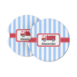 What little boy doesn't dream about growing up and becoming a fire fighter? Set on a classic striped blue and white background, this design featuring a snazzy firetruck is perfect for your little fireman-to-be.