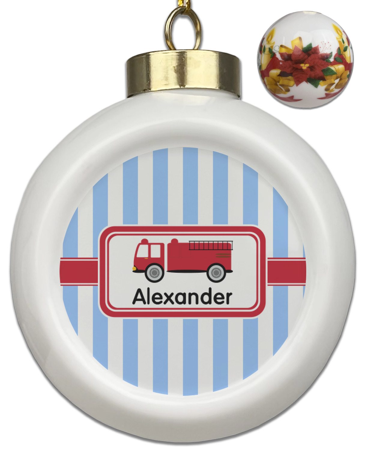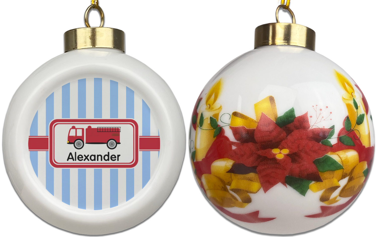 Our Christmas ornaments are a unique ceramic ball shape with a twist as it has a flat face to display your custom design! Select from one of our two design types - Christmas Tree or Poinsettia Garland - to adorn the curved back of your personal design. Each ornament measures 3H x 2.5W x 2D accompanied with a gold string accent for finishing touches to hang on your beautiful Christmas tree!