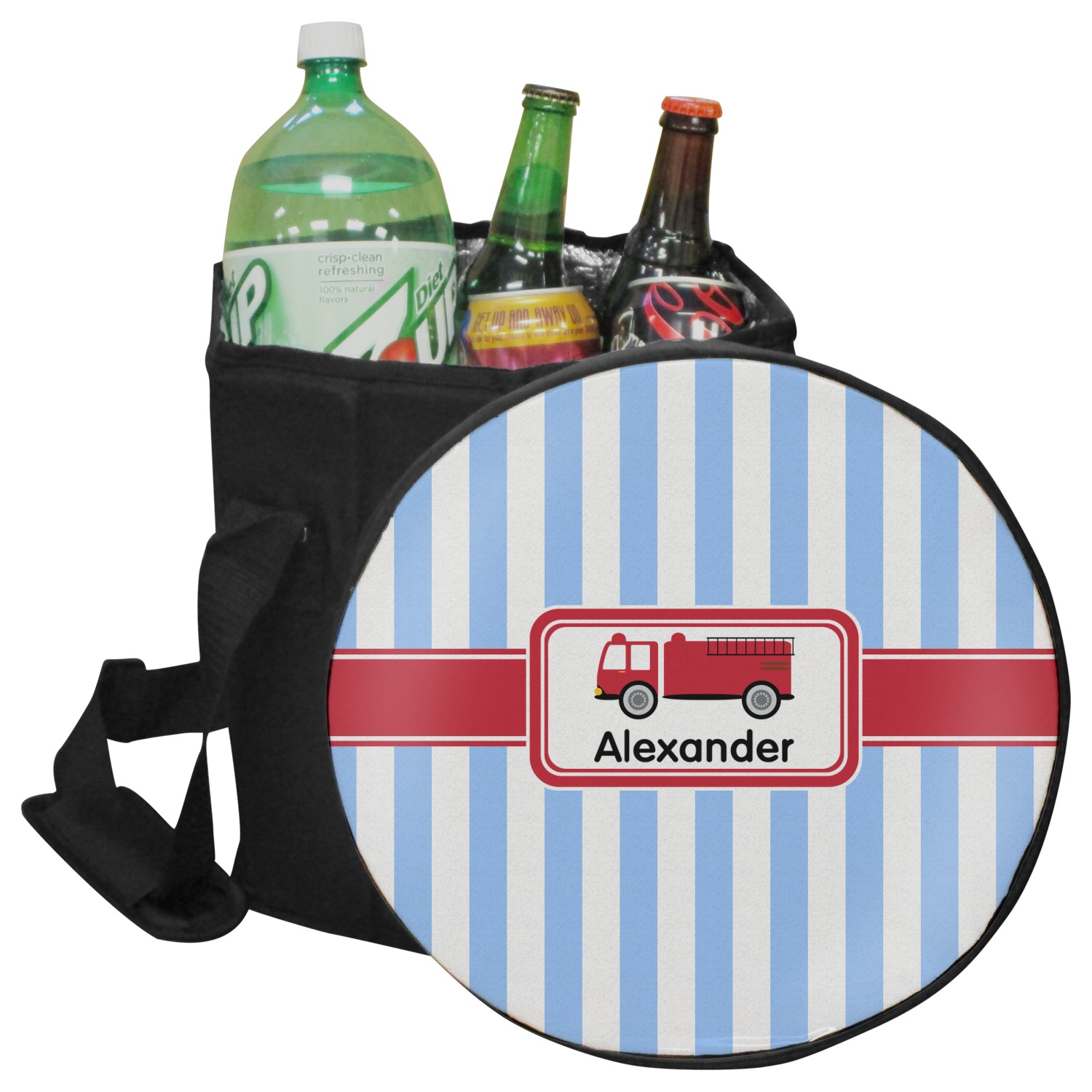 Our collapsible insulated coolers feature a unique six-sided hexagon shape, are lightweight, durable and can be turned into a seat. This cooler is fully insulated with silver foil lining to keep food and drinks hot or cold, and has a 12-quart capacity. Although this cooler collapses for easy transport, hidden inside are composition panels made of sturdy wood that give the frame strength and allow this cooler to be used as a seat. Simply sit down on the personalized cover and give your legs a break! (Maximum weight capacity of 200 pounds.)