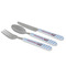 This set features a fork, a spoon and a knife. The fork has 4 prongs, the spoon is a nice size for adults and the knife has a short serrated section for cutting as well as a smooth section for spreading. The pieces in this silverware set are crafted from Stainless Steel with a durable plastic handle.