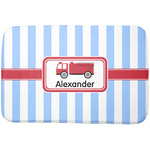 What little boy doesn't dream about growing up and becoming a fire fighter? Set on a classic striped blue and white background, this design featuring a snazzy firetruck is perfect for your little fireman-to-be.