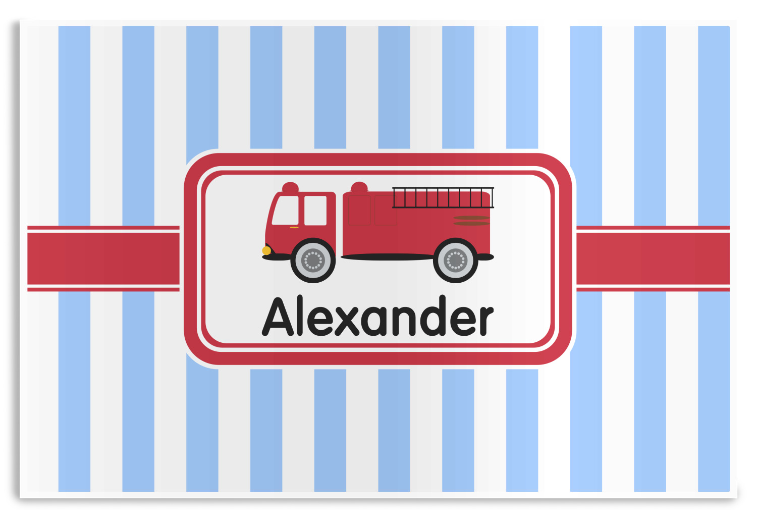What little boy doesn't dream about growing up and becoming a fire fighter? Set on a classic striped blue and white background, this design featuring a snazzy firetruck is perfect for your little fireman-to-be.