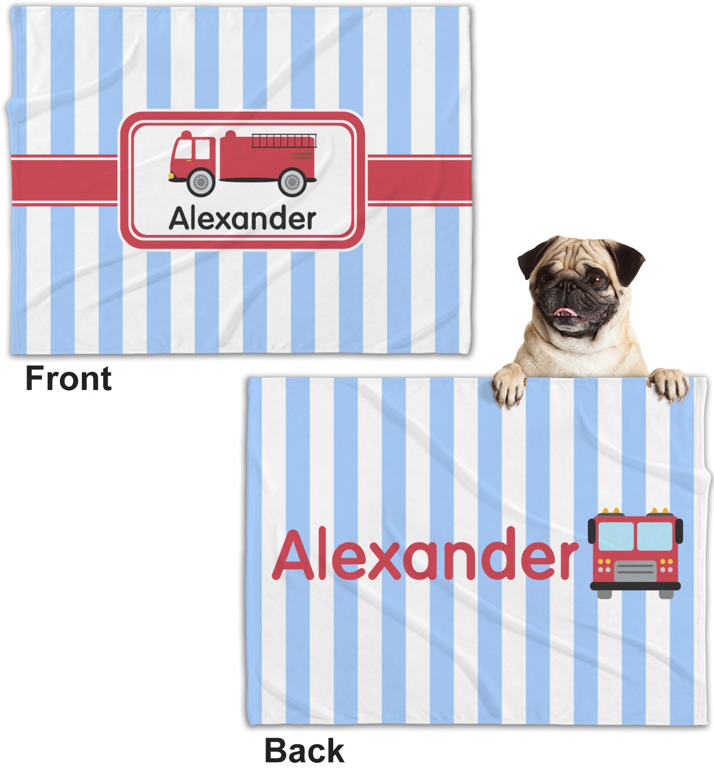 These dog blankets are crafted from a gentle, soft-to-the-touch, minky material. We print your customizations, either matching or differing, on both the top and underside of the blanket. These personalized dog blankets are available in two sizes: regular and large. Our regular size, at 40" x 30", accommodates small and some medium size dogs. At 60" x 50", our large dog blanket is a better fit for bigger breeds. Though specialized for dogs, these blankets still make a thoughtful gift for your favorite feline, or any other pet in mind!