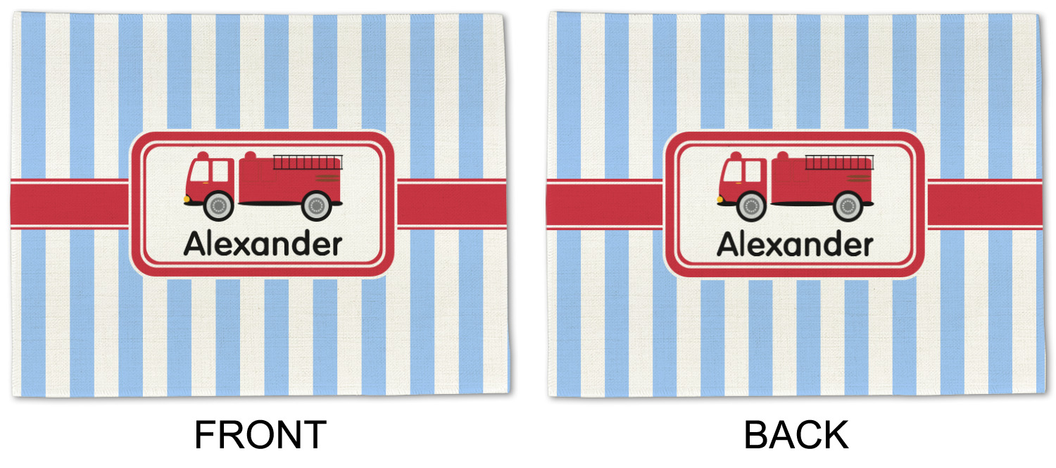 What little boy doesn't dream about growing up and becoming a fire fighter? Set on a classic striped blue and white background, this design featuring a snazzy firetruck is perfect for your little fireman-to-be.