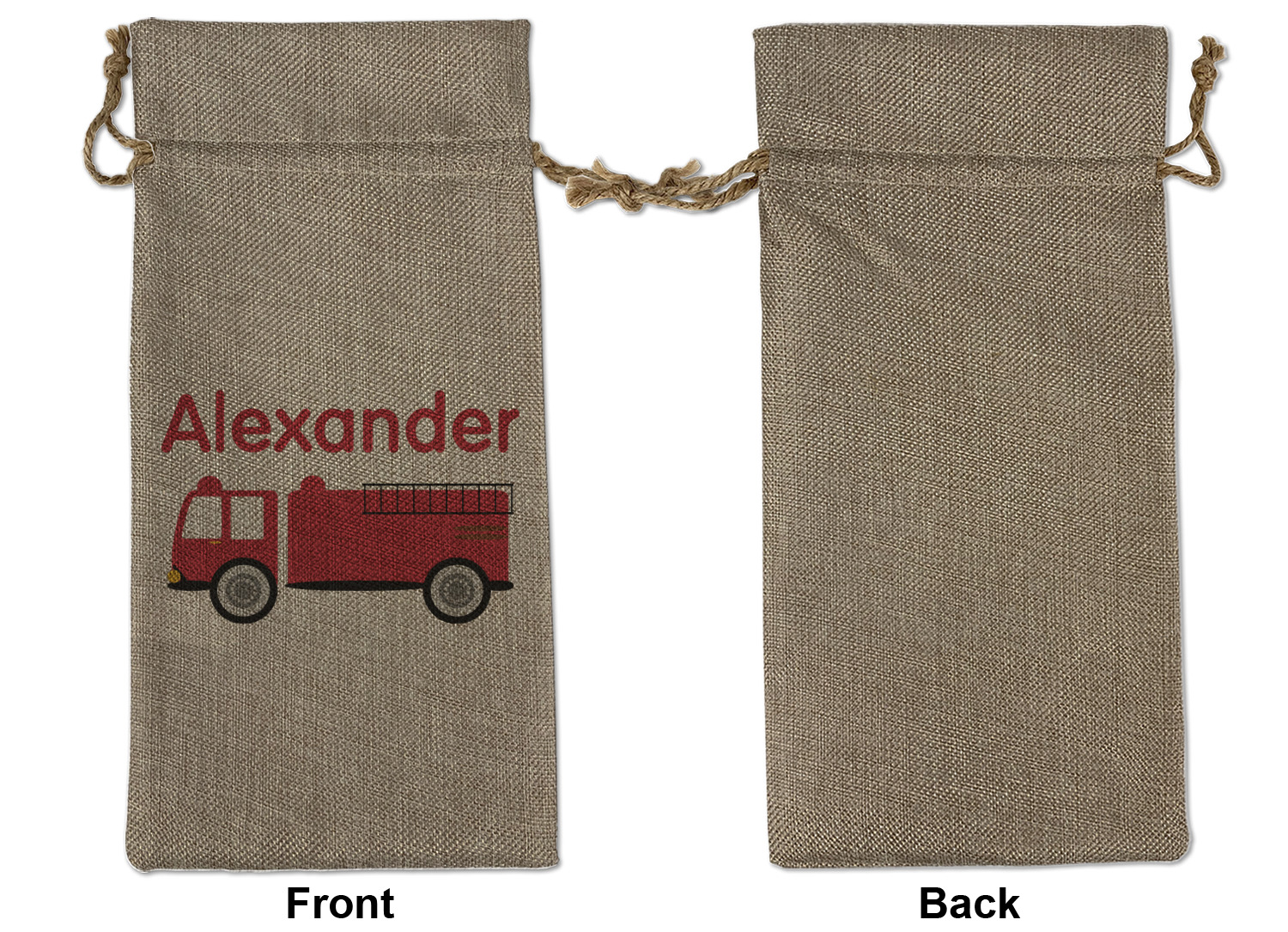 We sell our Burlap Gift Bags in 3 variant sized bags. Made with burlap polyester, each personalized bag can be secured with a twine drawstring pull. Your custom design is available to print on one side or both sides - completely up to you! The sizes of the bags measure approximately 4.5" x 6.5" for the smallest size, 6.5" x 8.0" for the medium size, and 6.5" x 13.5" for the large-sized bag.