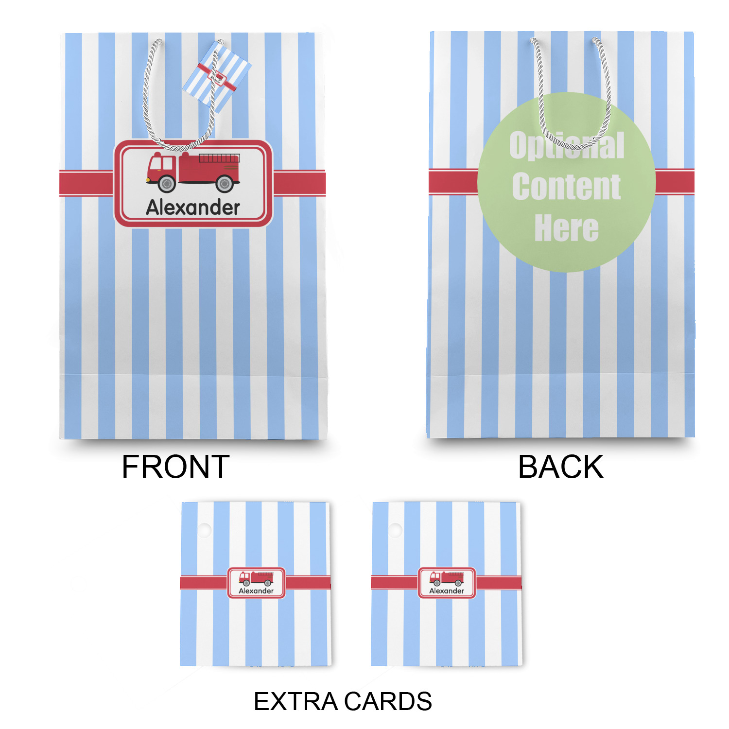 The bottom of the bag has a cardstock base to make the base more sturdy to hold up to all of your gifts. Each bag comes with one card on the rope handle and at least 1 extra card.