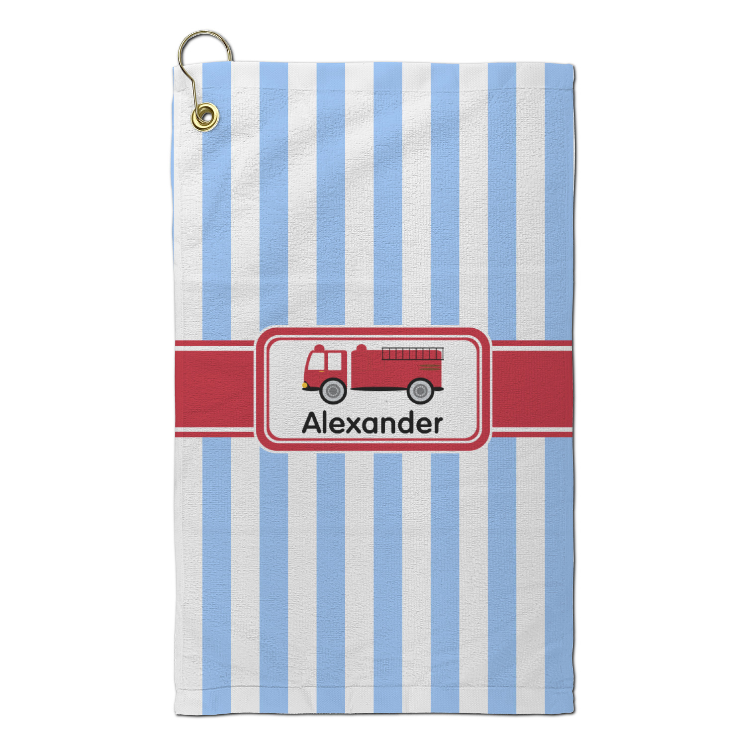 What little boy doesn't dream about growing up and becoming a fire fighter? Set on a classic striped blue and white background, this design featuring a snazzy firetruck is perfect for your little fireman-to-be.